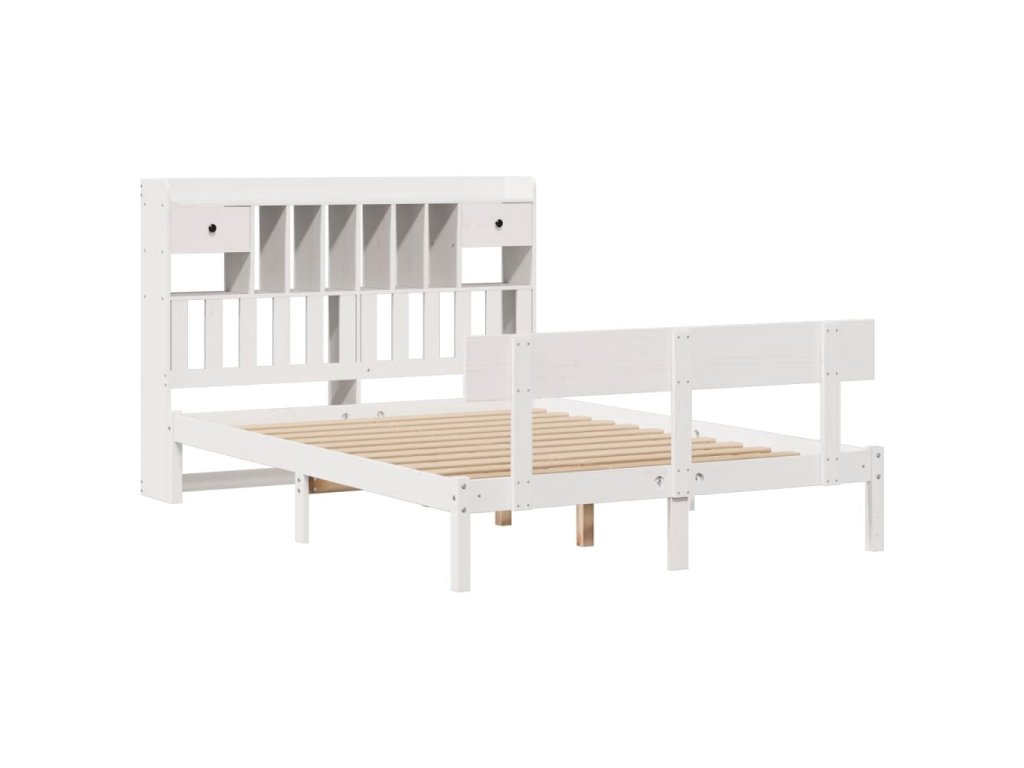 Postel s knihovnou bez matrace bílá 160x200 cm masivní borovice 3321839