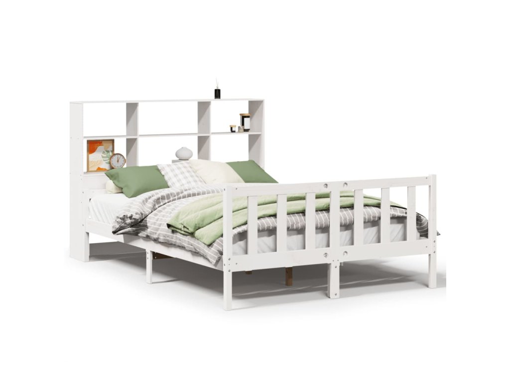 Postel s knihovnou bez matrace bílá 160x200 cm masivní borovice 3322138