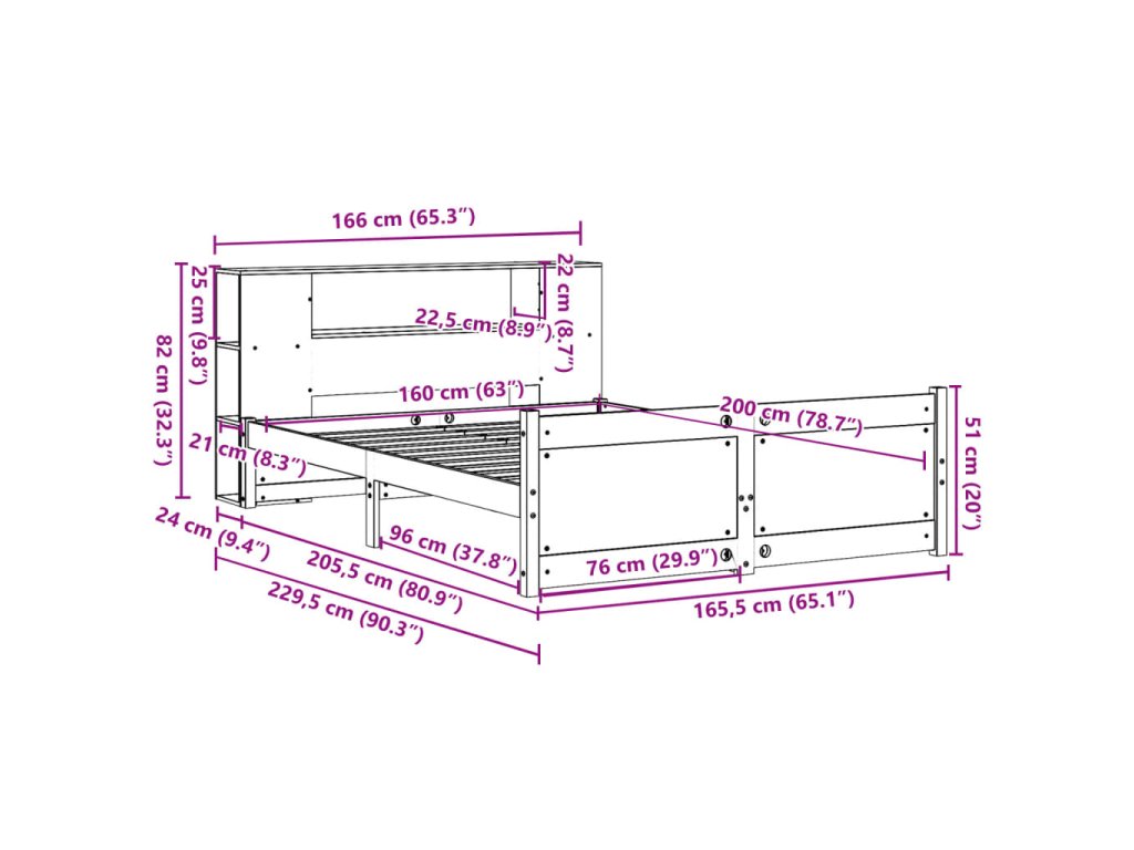 Postel s knihovnou bez matrace bílá 160x200 cm masivní borovice 3322442