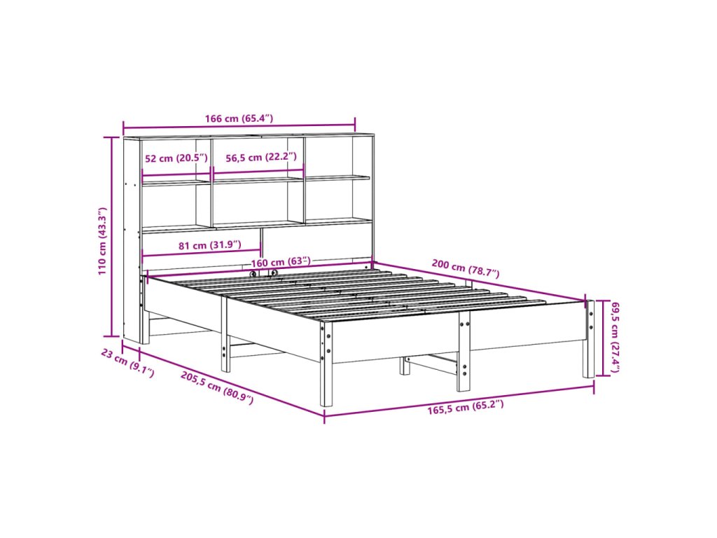 Postel s knihovnou bez matrace bílá 160x200 cm masivní borovice 3322865