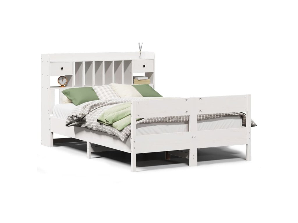Postel s knihovnou bez matrace bílá 160x200 cm masivní borovice 3323021