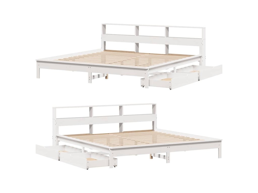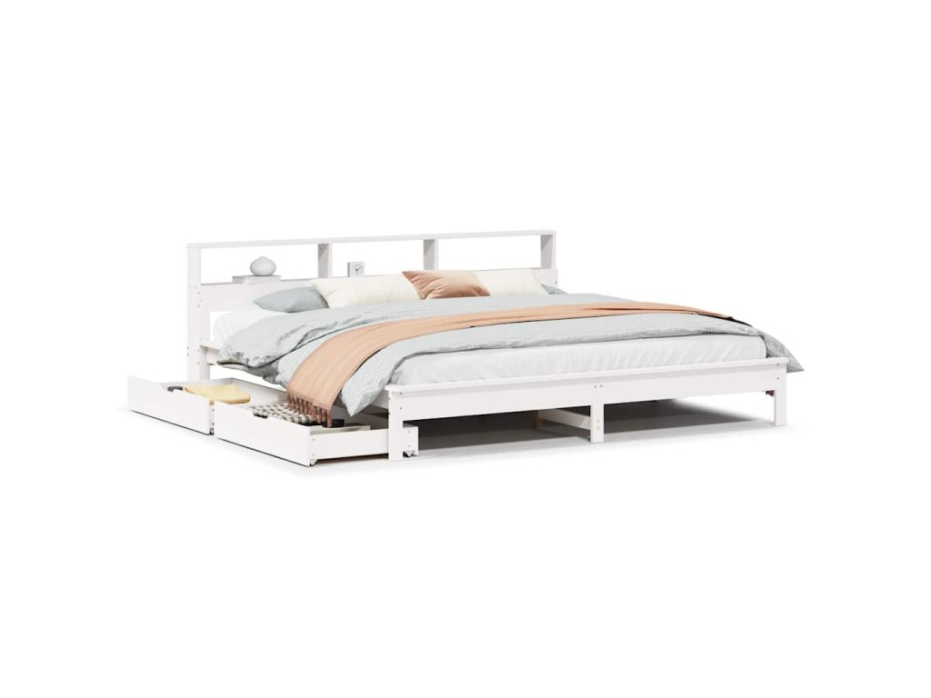 Postel s knihovnou bez matrace bílá 180x200 cm masivní borovice 3309801