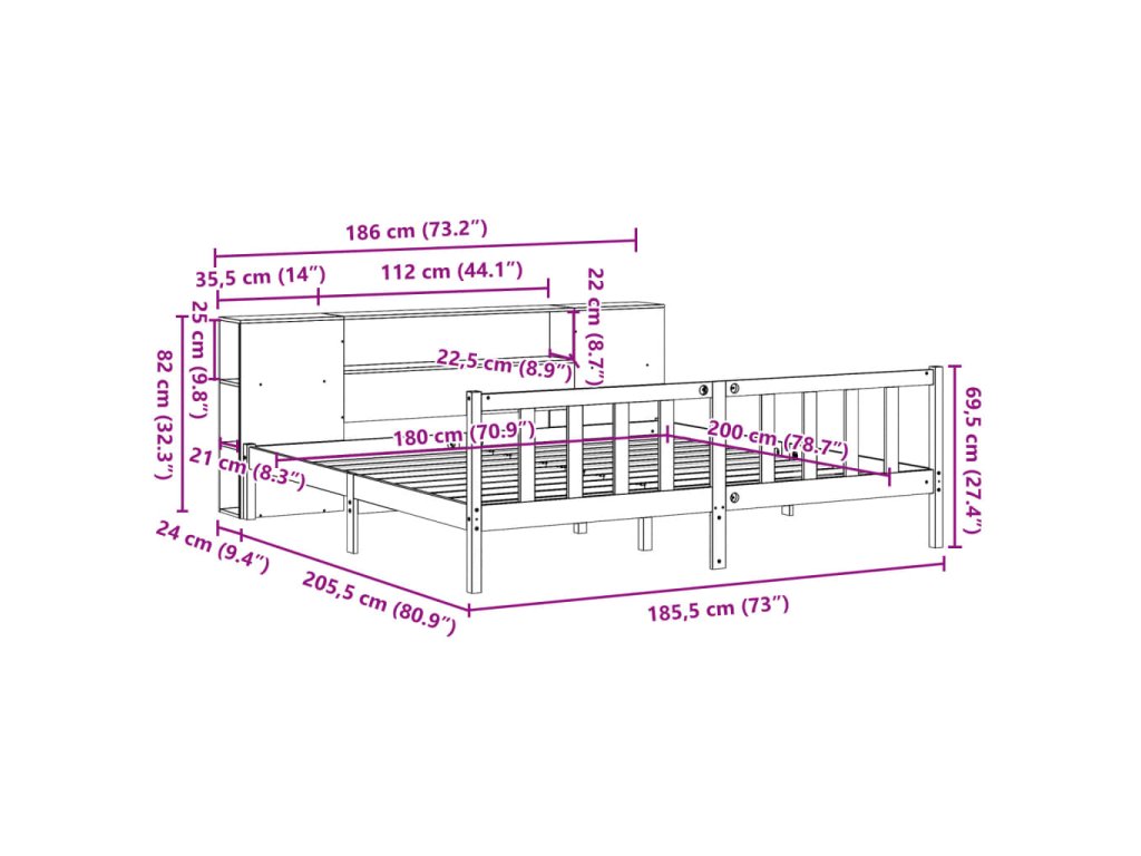 Postel s knihovnou bez matrace bílá 180x200 cm masivní borovice 3321664