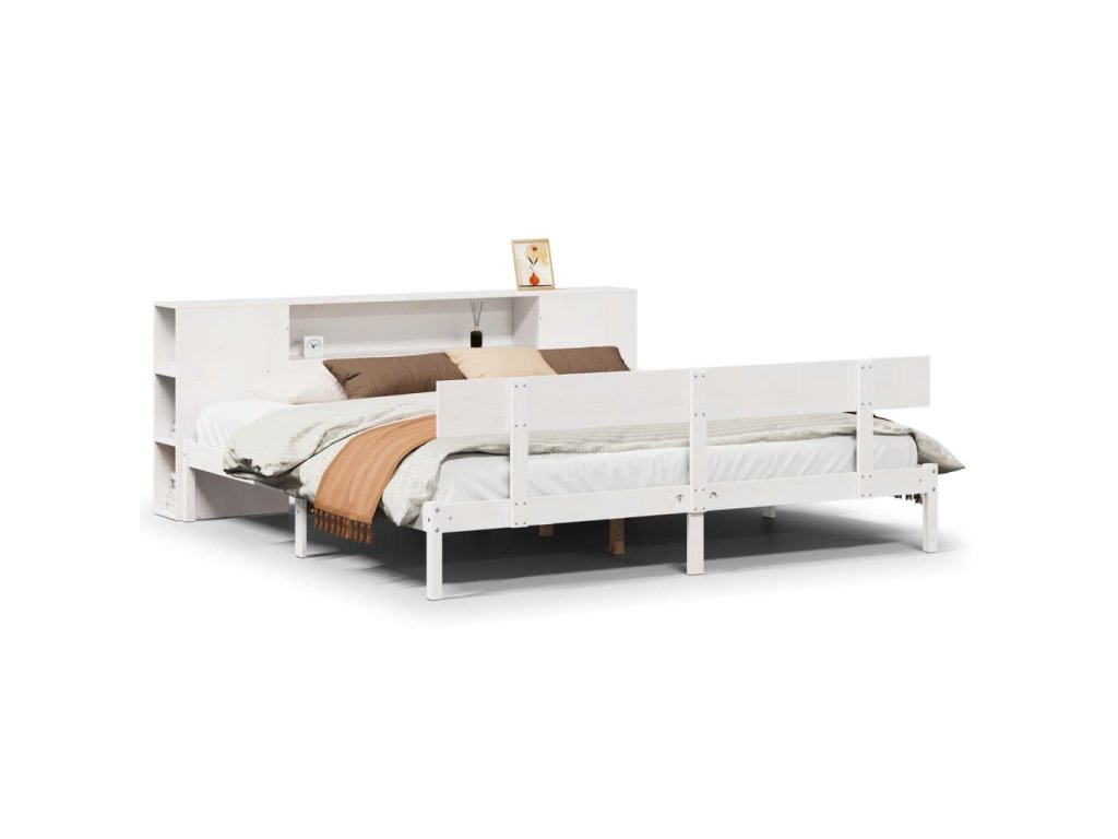 Postel s knihovnou bez matrace bílá 180x200 cm masivní borovice 3321781