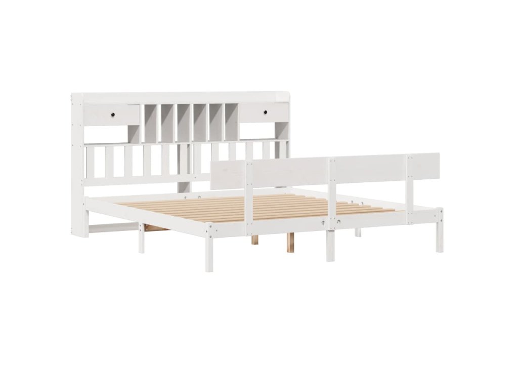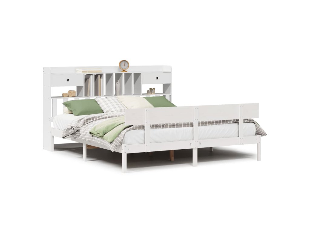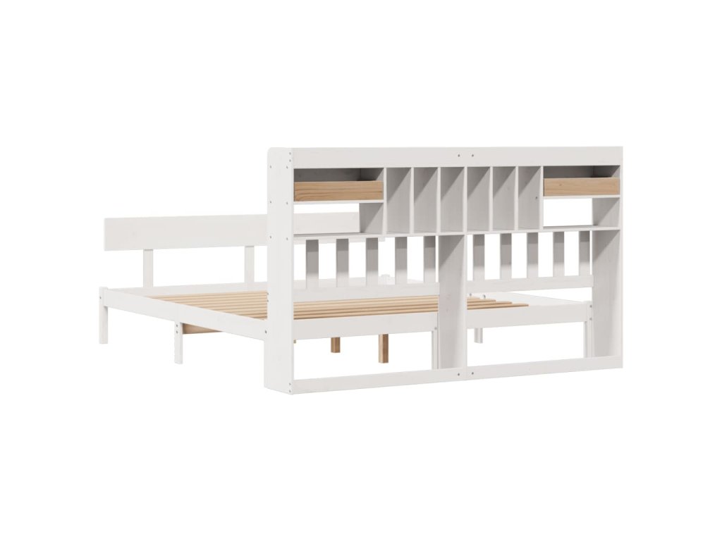 Postel s knihovnou bez matrace bílá 180x200 cm masivní borovice 3321841