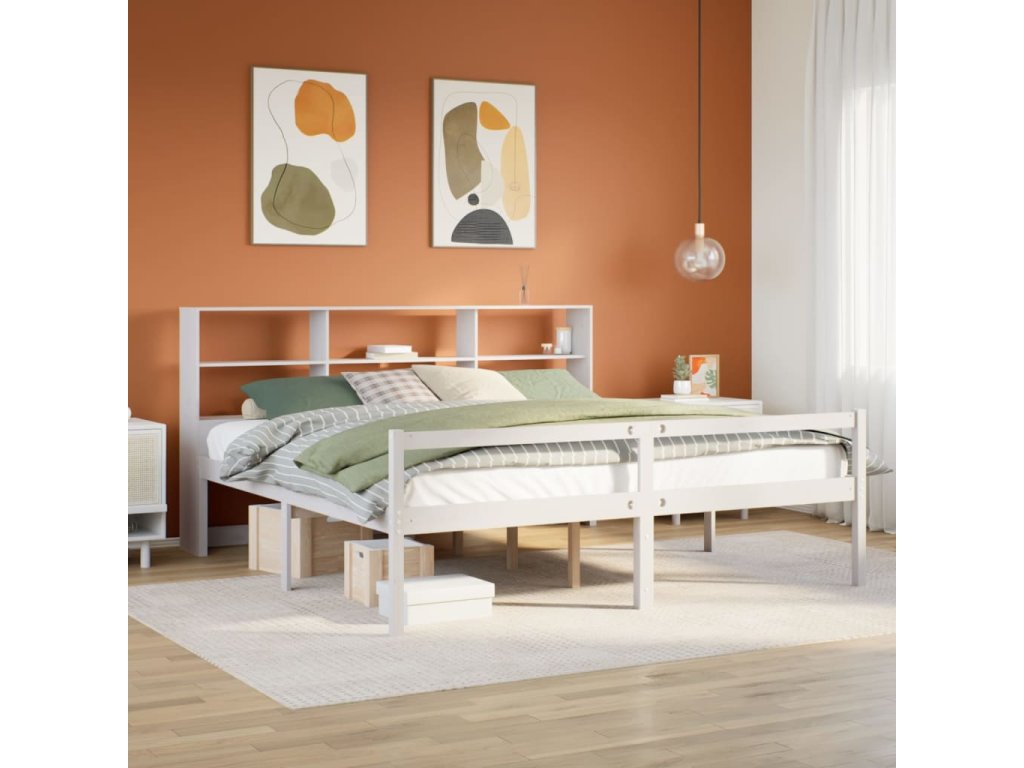 Postel s knihovnou bez matrace bílá 180x200 cm masivní borovice 3322023