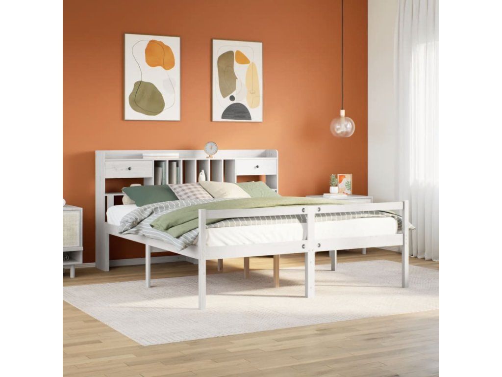 Postel s knihovnou bez matrace bílá 180x200 cm masivní borovice 3322062