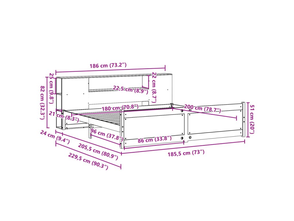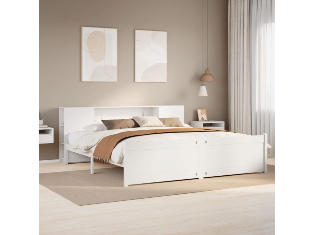 Postel s knihovnou bez matrace bílá 180x200 cm masivní borovice 3322444