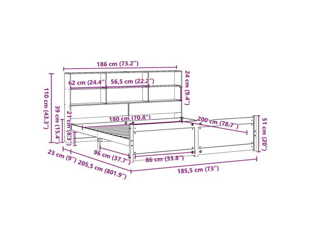 Postel s knihovnou bez matrace bílá 180x200 cm masivní borovice 3322478