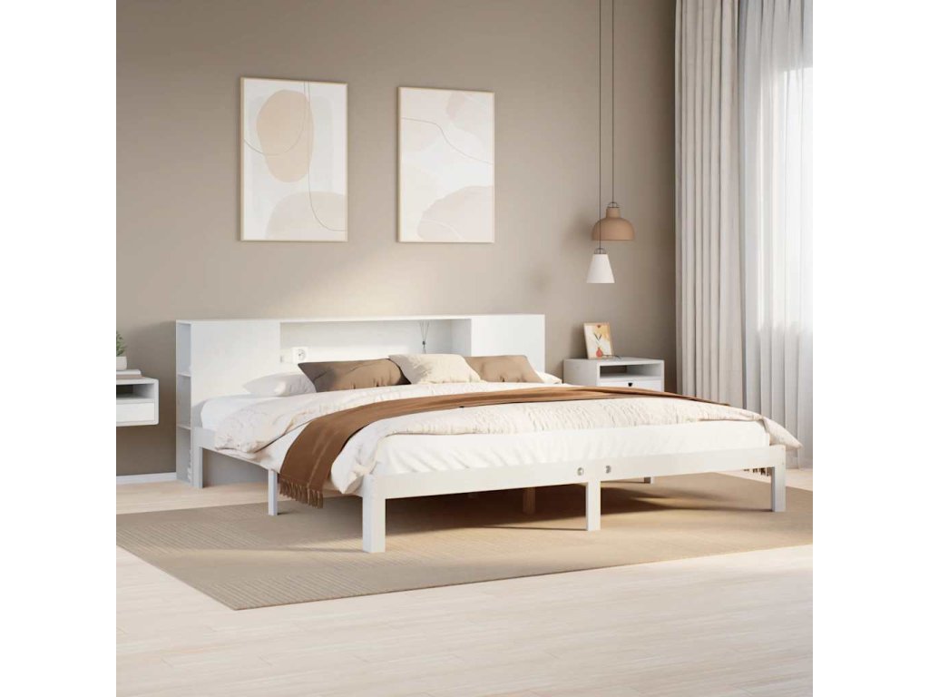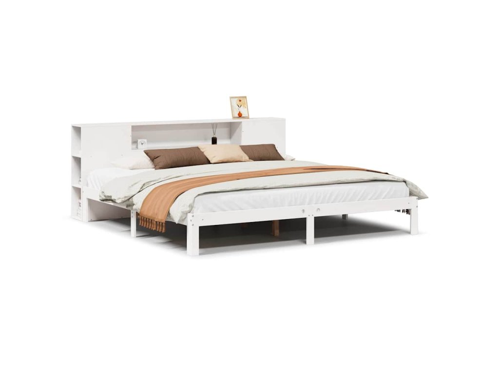 Postel s knihovnou bez matrace bílá 180x200 cm masivní borovice 3322522