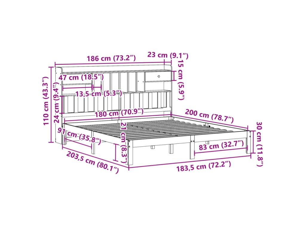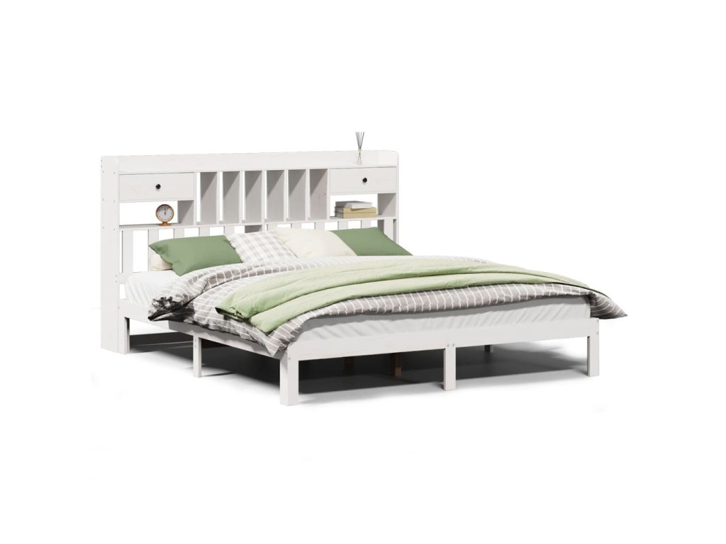 Postel s knihovnou bez matrace bílá 180x200 cm masivní borovice 3322608