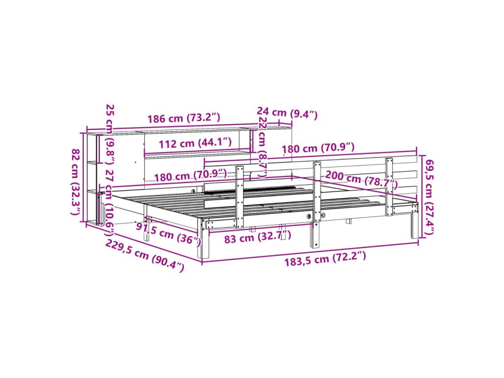 Postel s knihovnou bez matrace bílá 180x200 cm masivní borovice 3322717