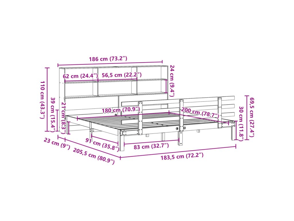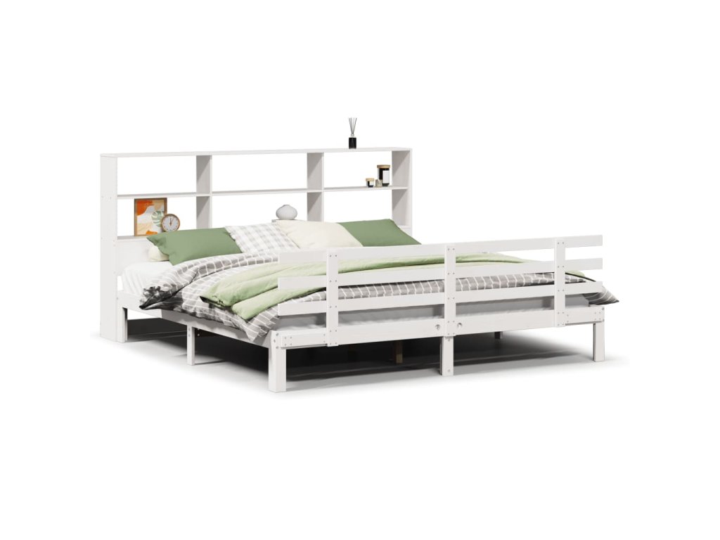 Postel s knihovnou bez matrace bílá 180x200 cm masivní borovice 3322764