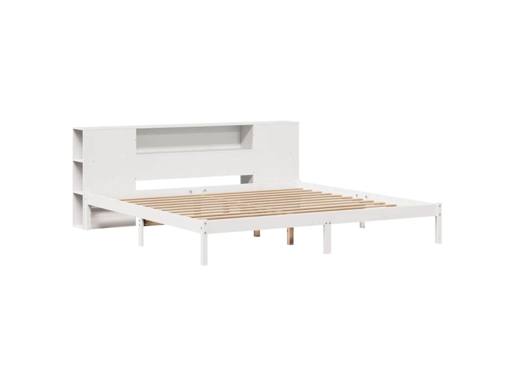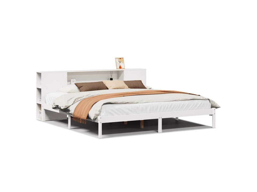 Postel s knihovnou bez matrace bílá 200x200 cm masivní borovice 3321549