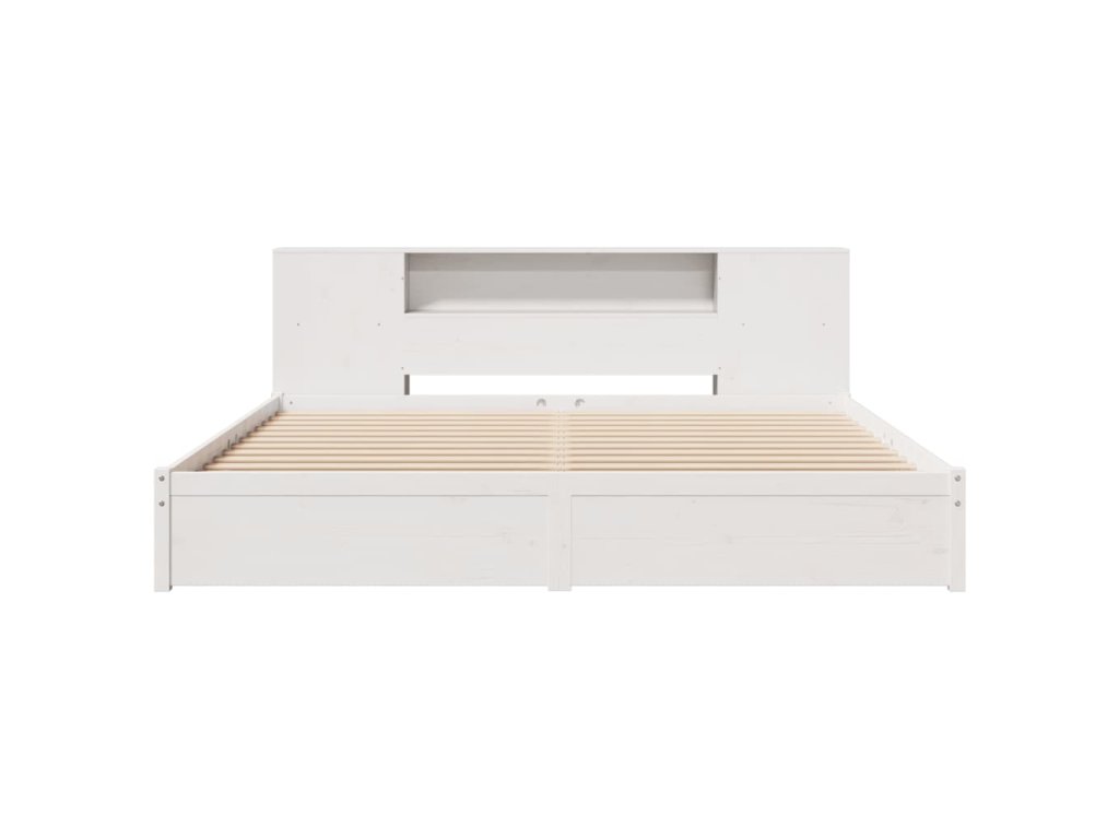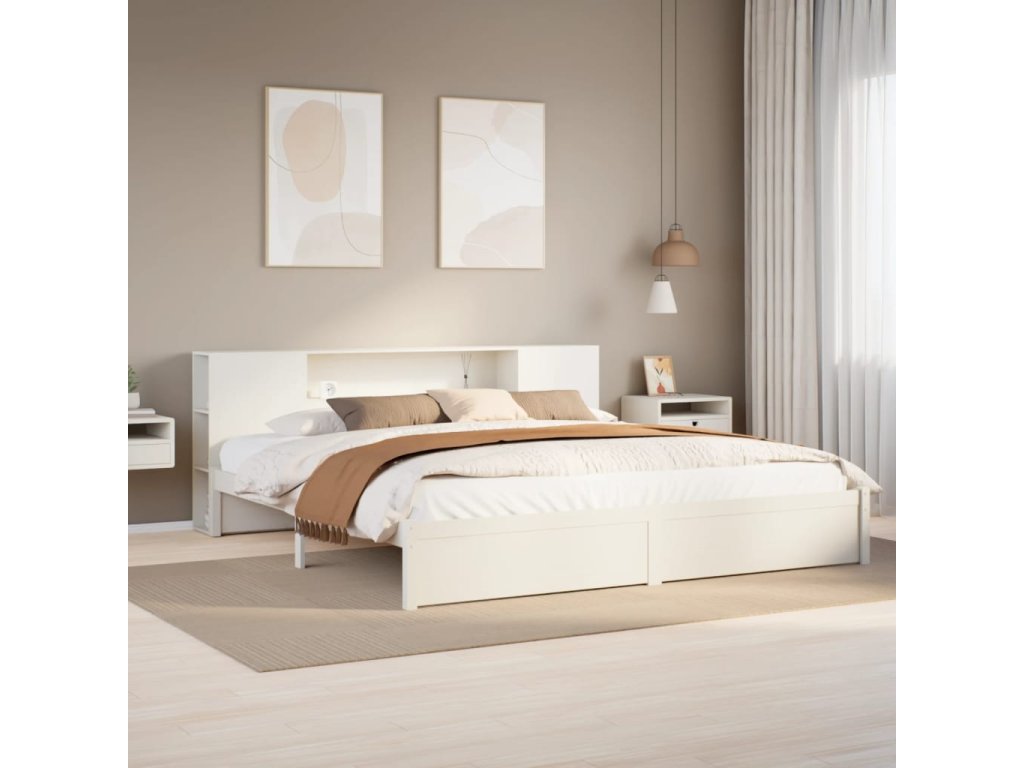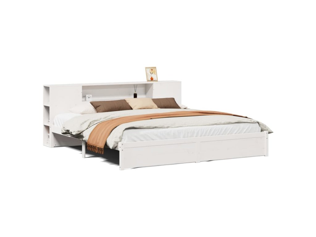 Postel s knihovnou bez matrace bílá 200x200 cm masivní borovice 3322368