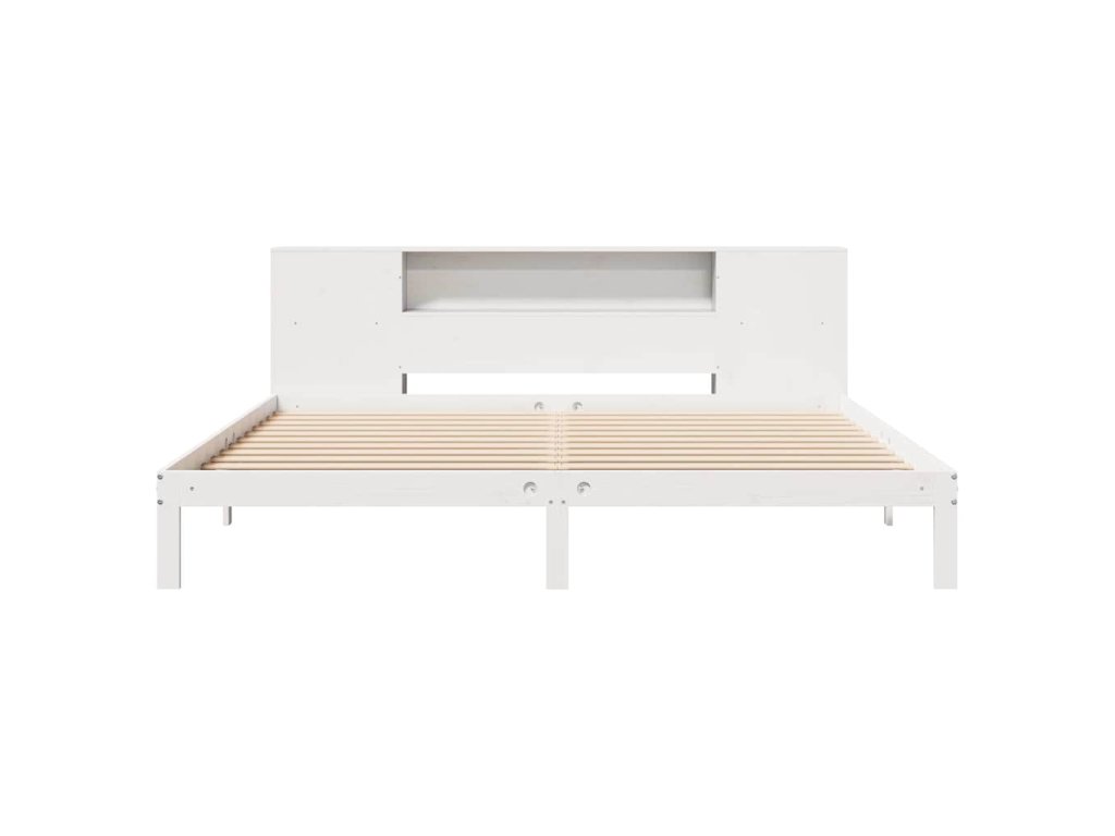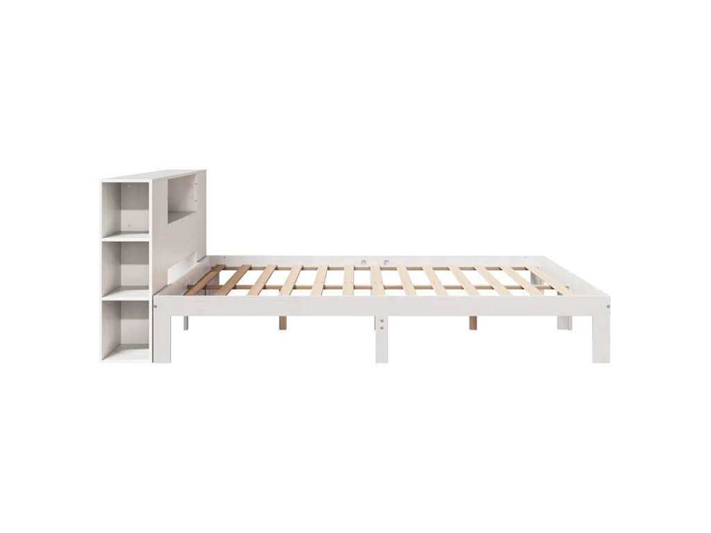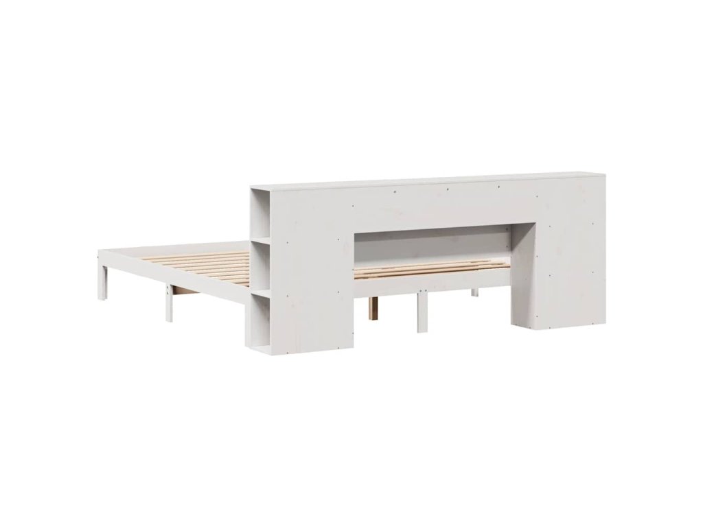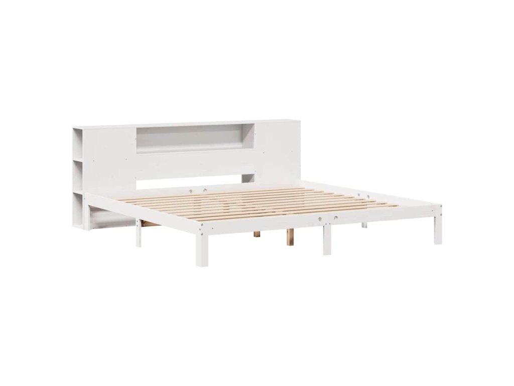 Postel s knihovnou bez matrace bílá 200x200 cm masivní borovice 3322524