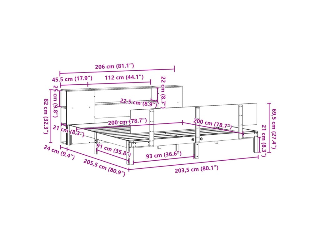 - Rozměry: 206 x 24 x 82 cm (Š x H x V)