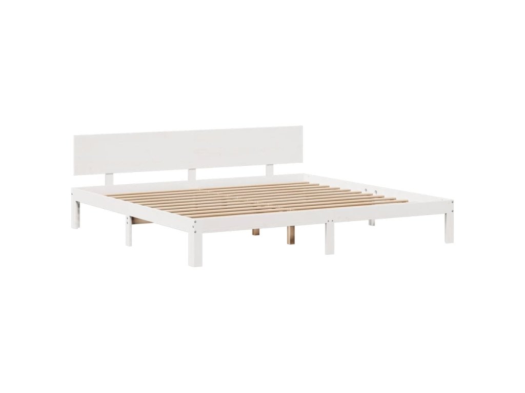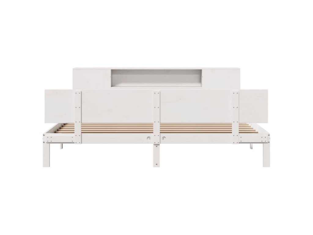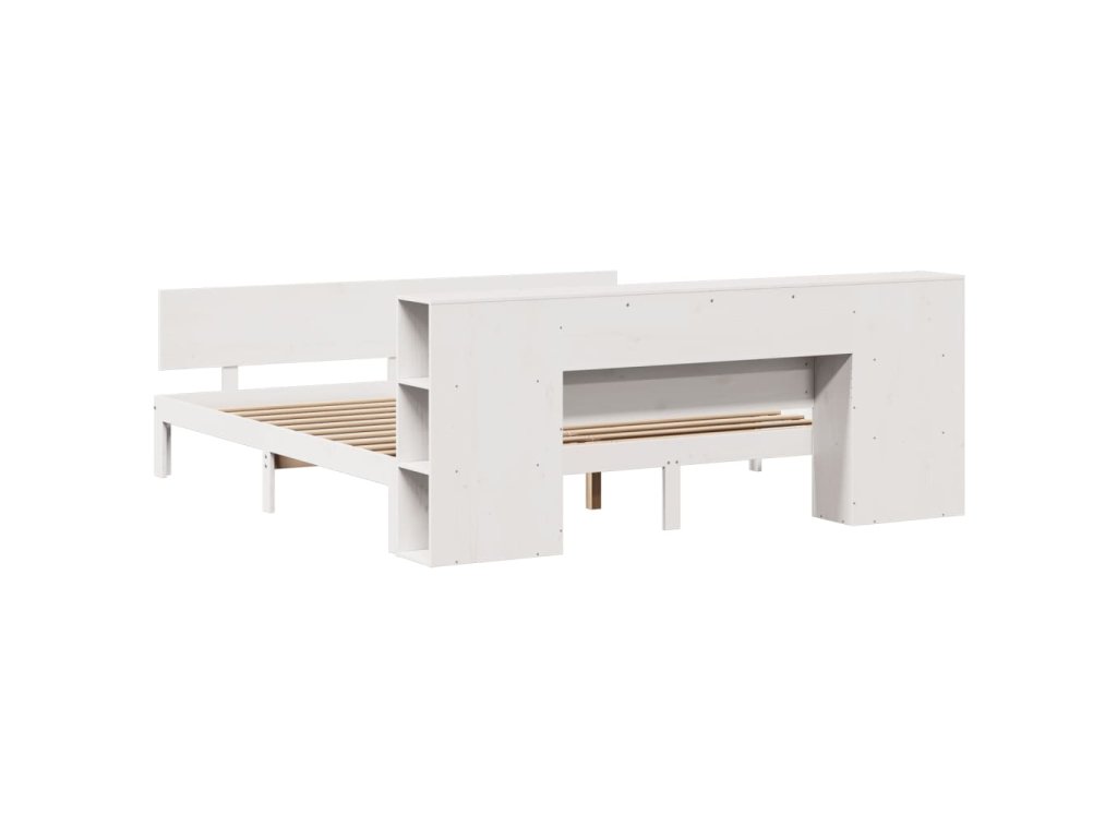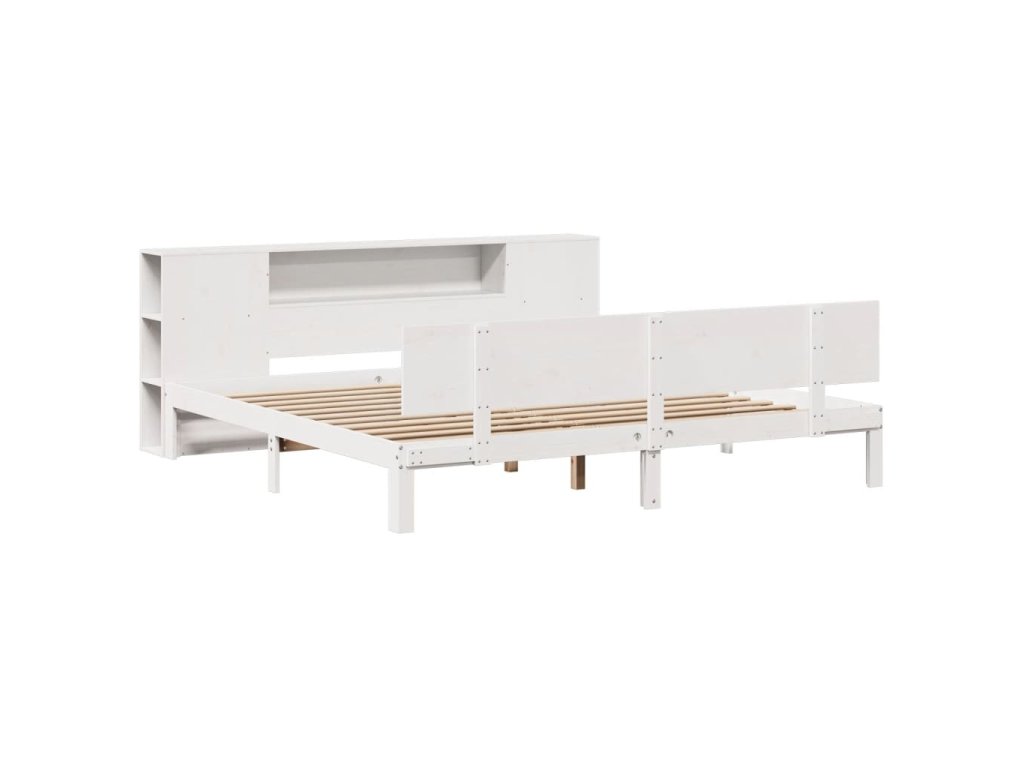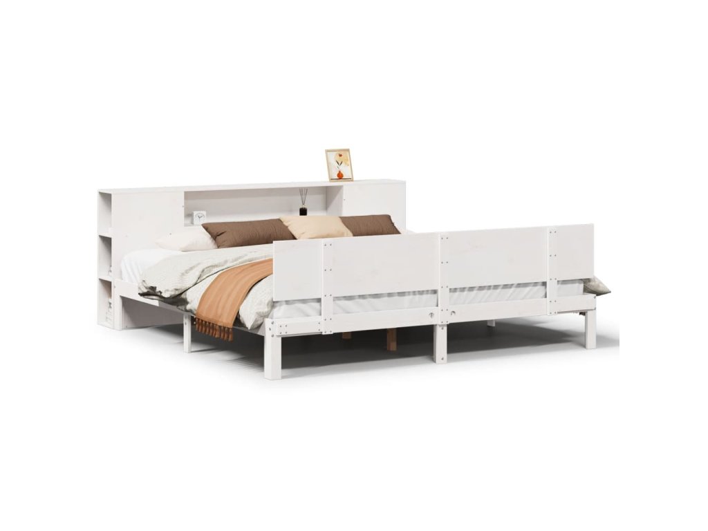 Postel s knihovnou bez matrace bílá 200x200 cm masivní borovice 3322641