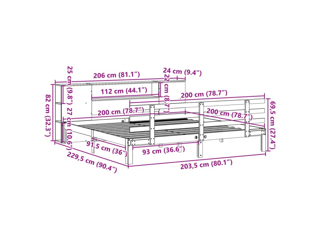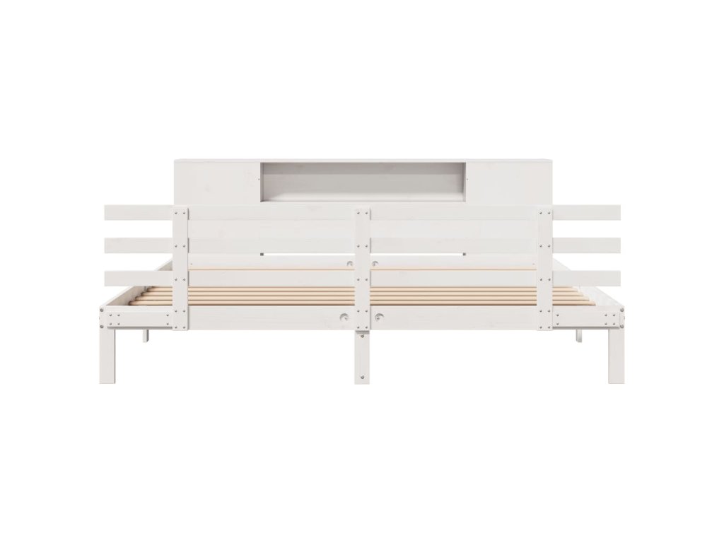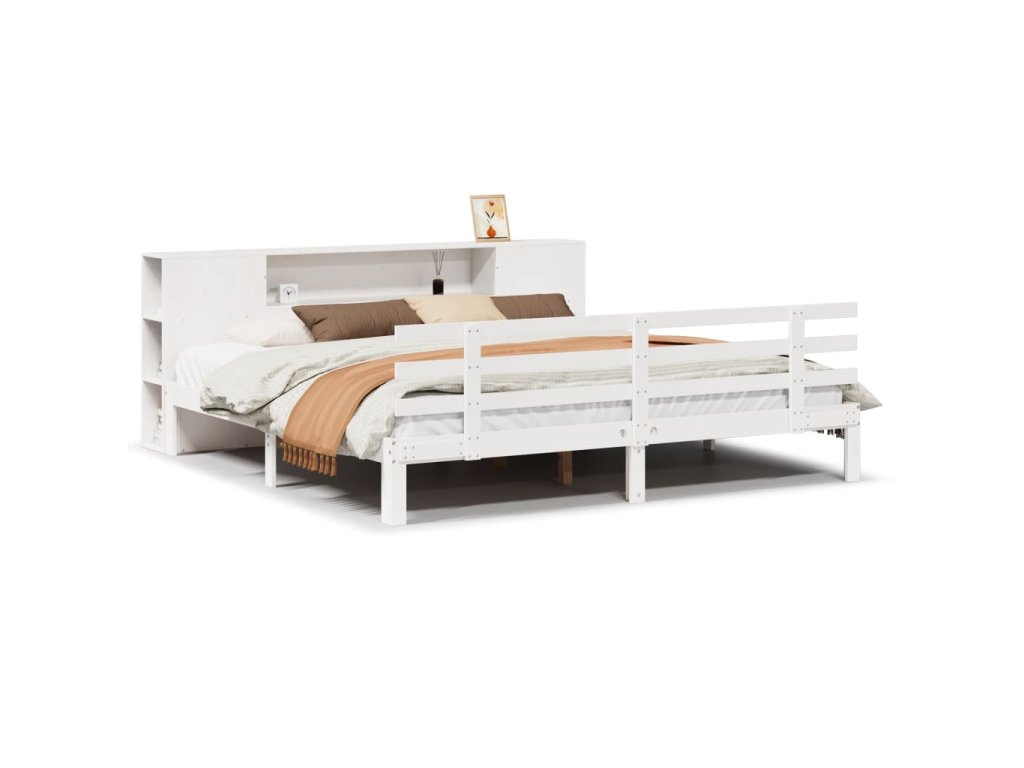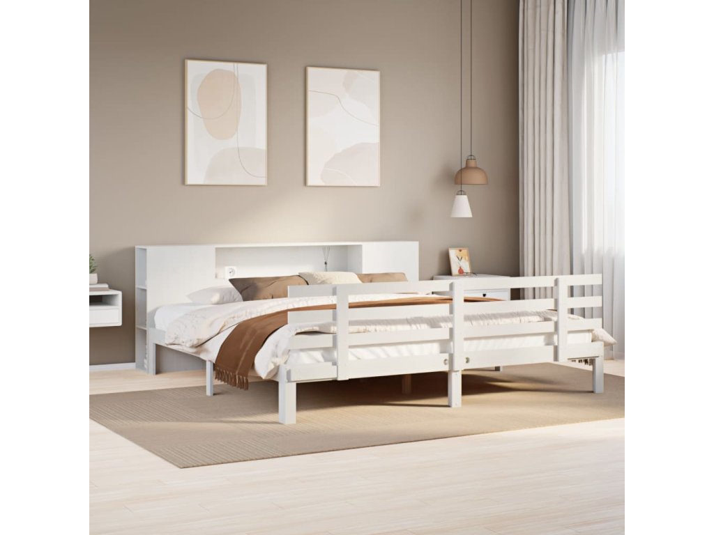 Postel s knihovnou bez matrace bílá 200x200 cm masivní borovice 3322719