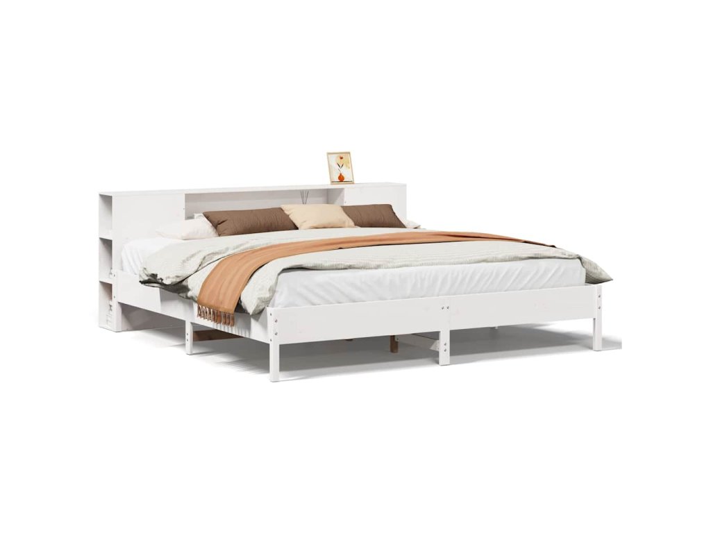Postel s knihovnou bez matrace bílá 200x200 cm masivní borovice 3322820