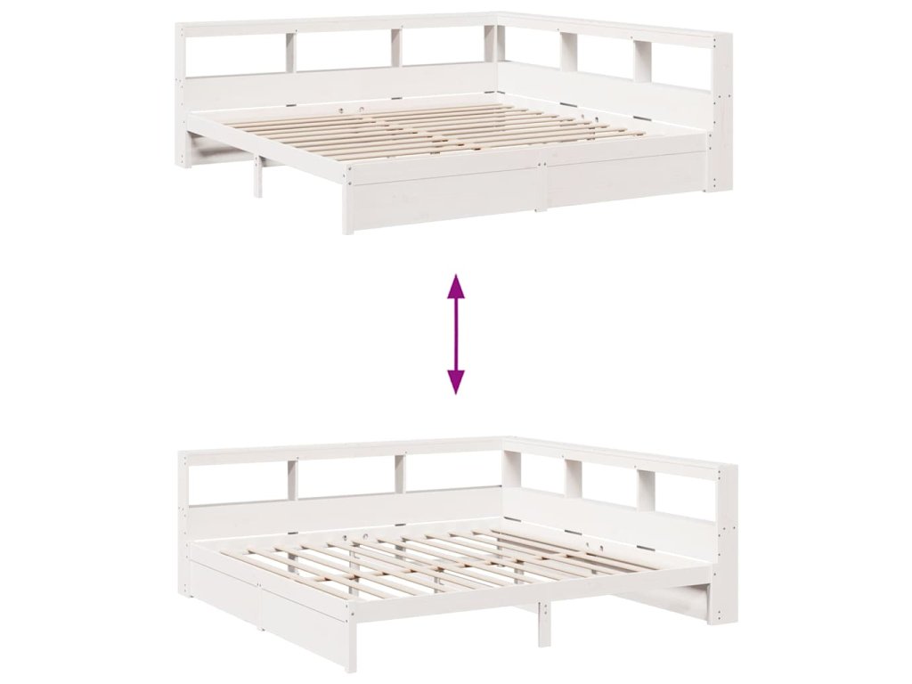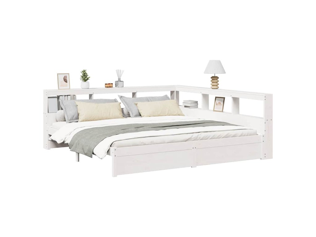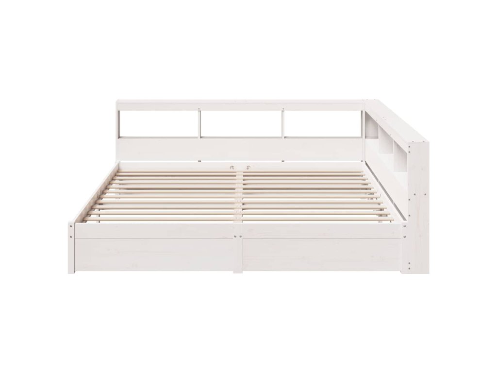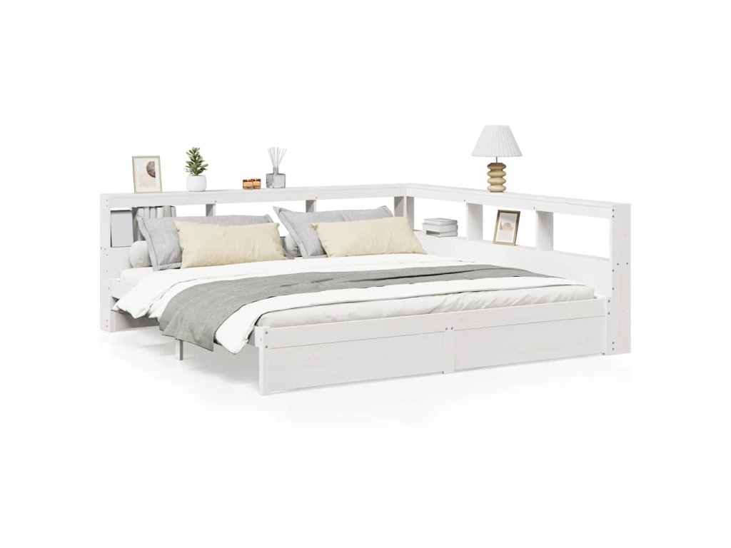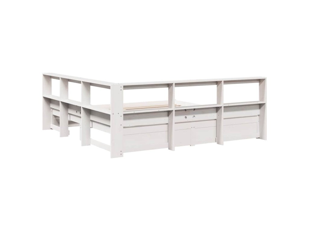 Postel s knihovnou bez matrace bílá 200x200 cm masivní borovice 3324345