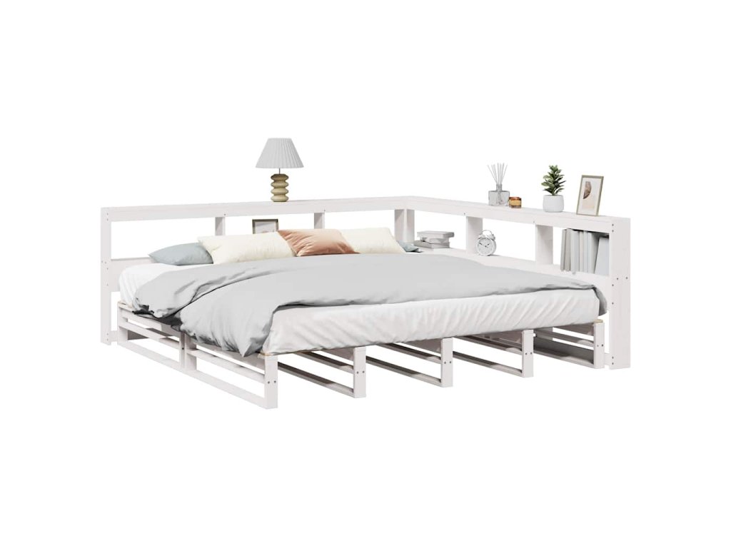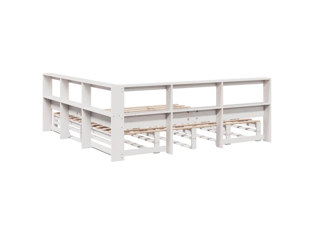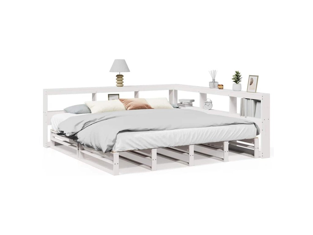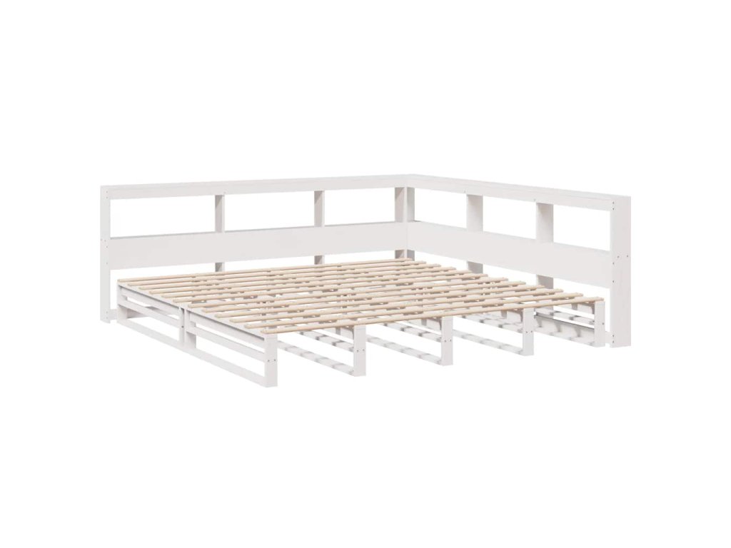 Postel s knihovnou bez matrace bílá 200x200 cm masivní borovice 3324488