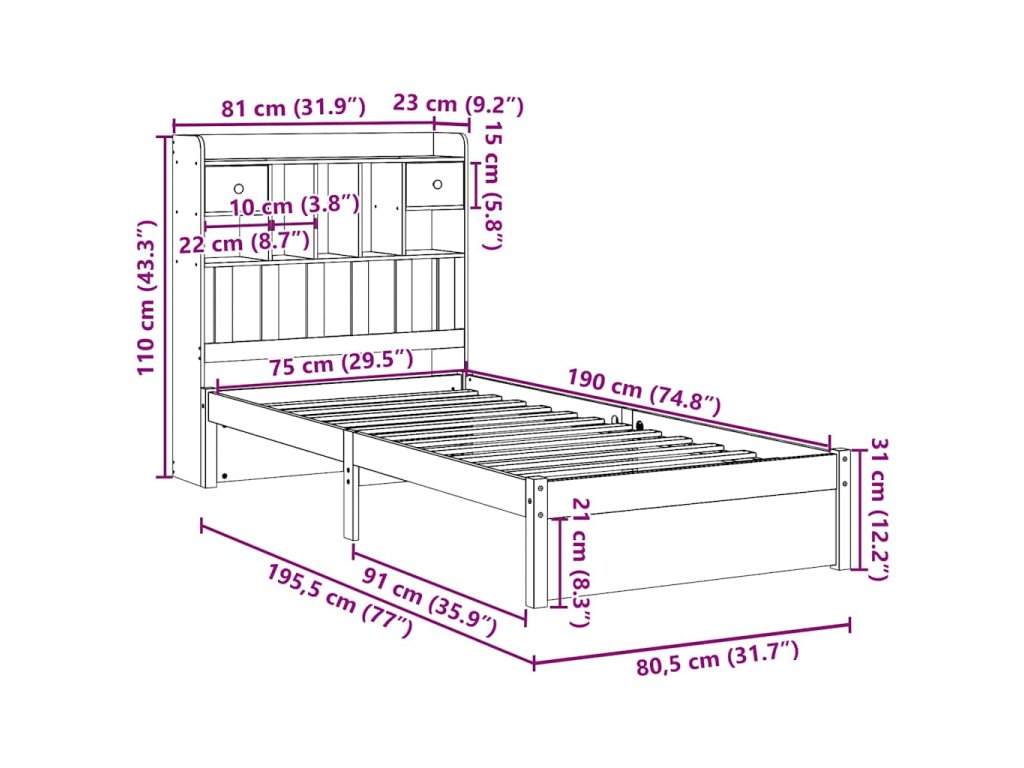 - Vhodné rozměry matrace: 75 x 190 cm (Š x D) (matrace není součástí balení)