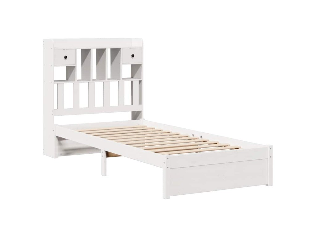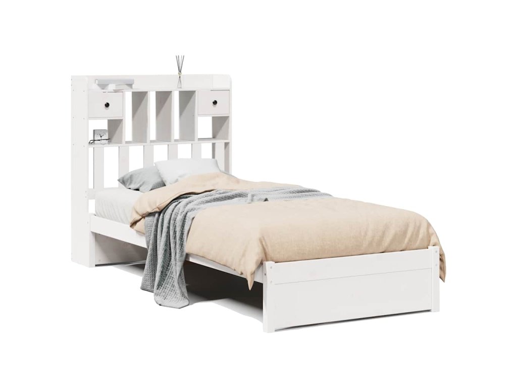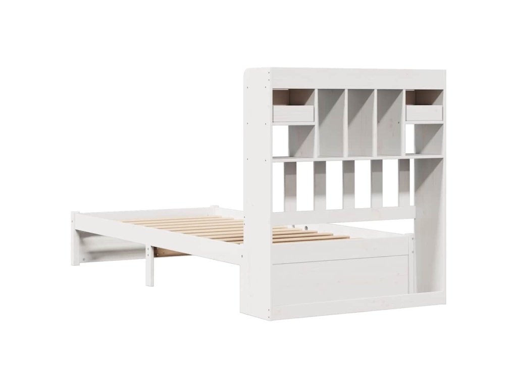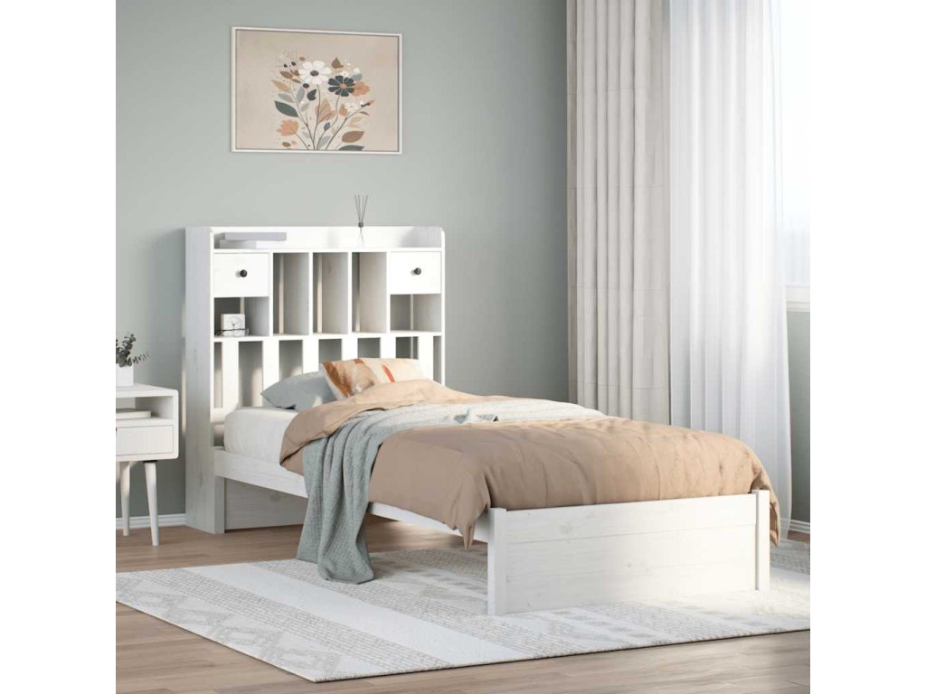 Postel s knihovnou bez matrace bílá 75x190 cm masivní borovice 3322404