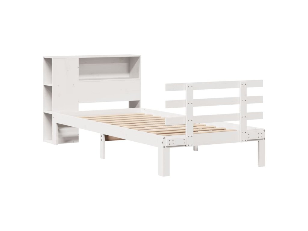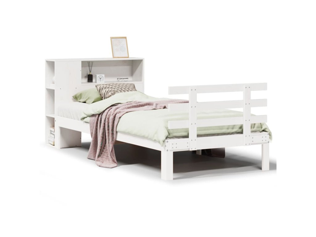 Postel s knihovnou bez matrace bílá 75x190 cm masivní borovice 3322730