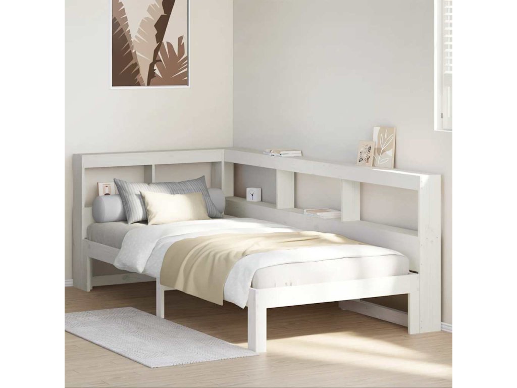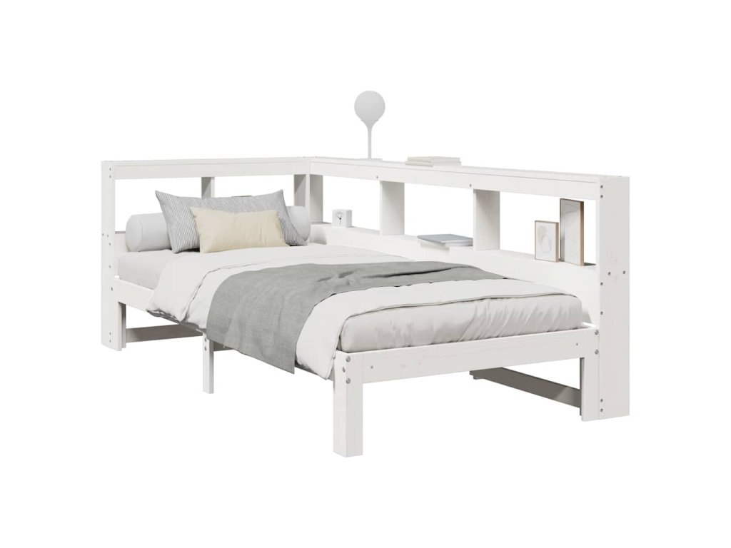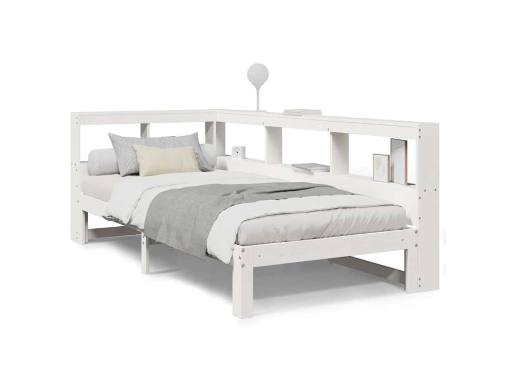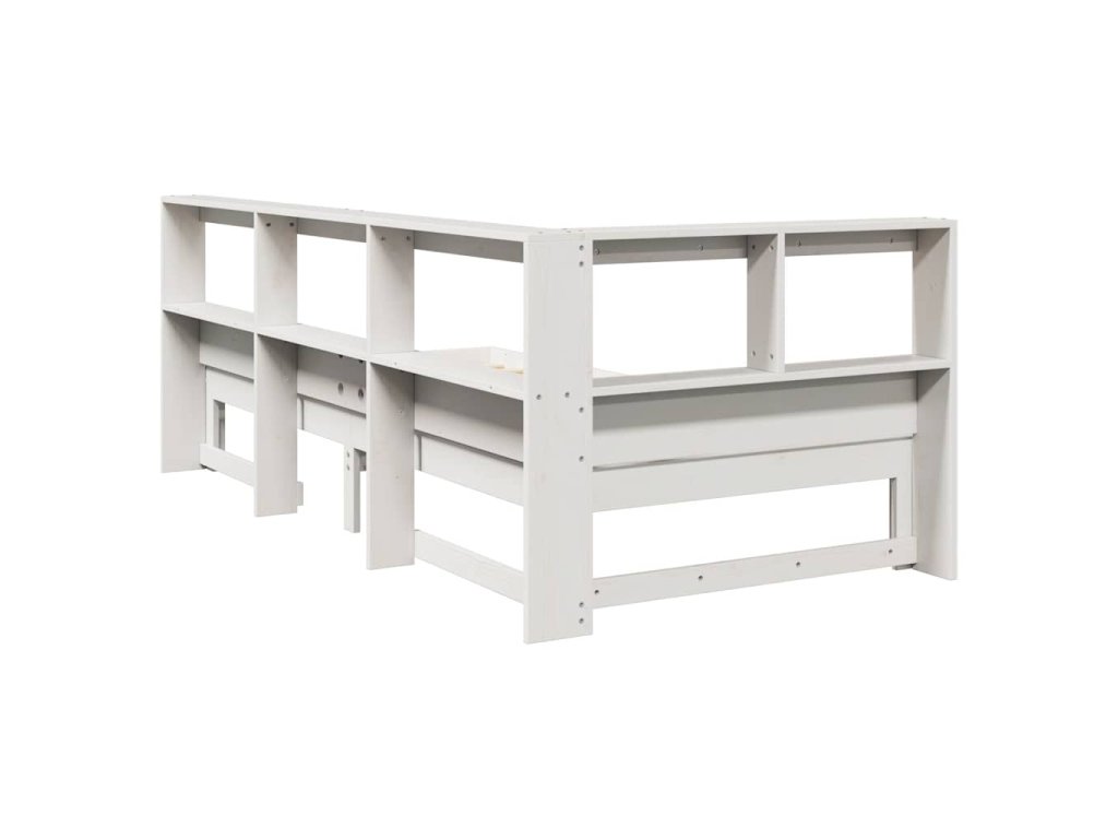 Postel s knihovnou bez matrace bílá 75x190 cm masivní borovice 3324407