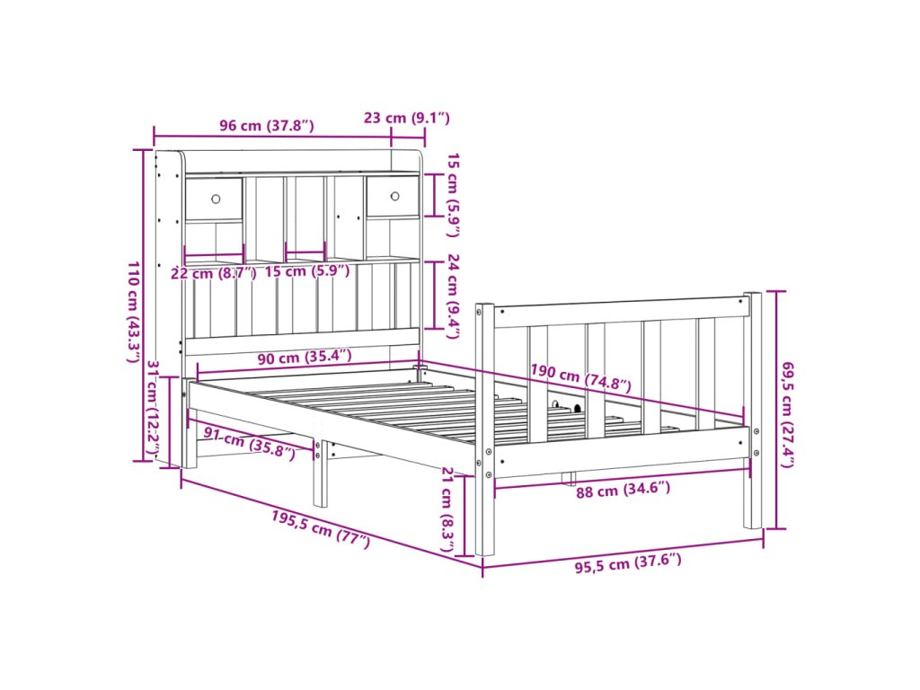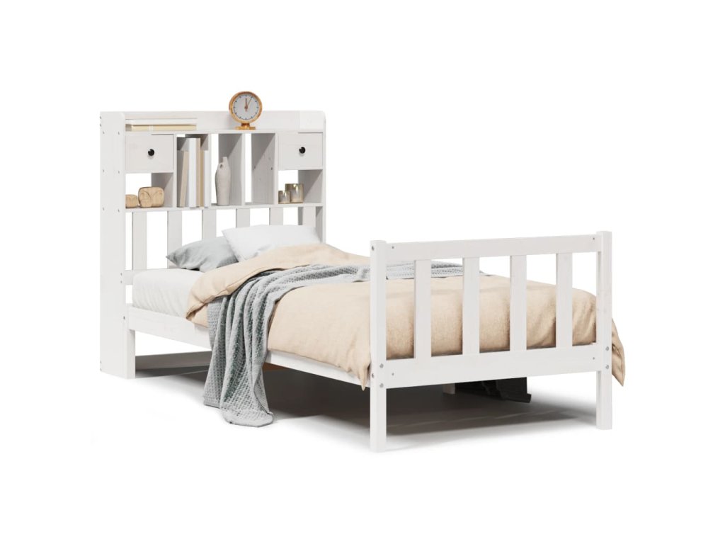 Postel s knihovnou bez matrace bílá 90x190 cm masivní borovice 3321730