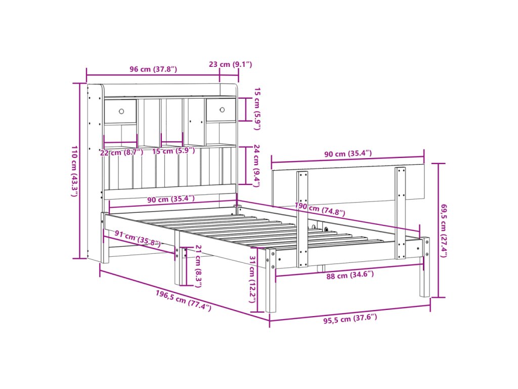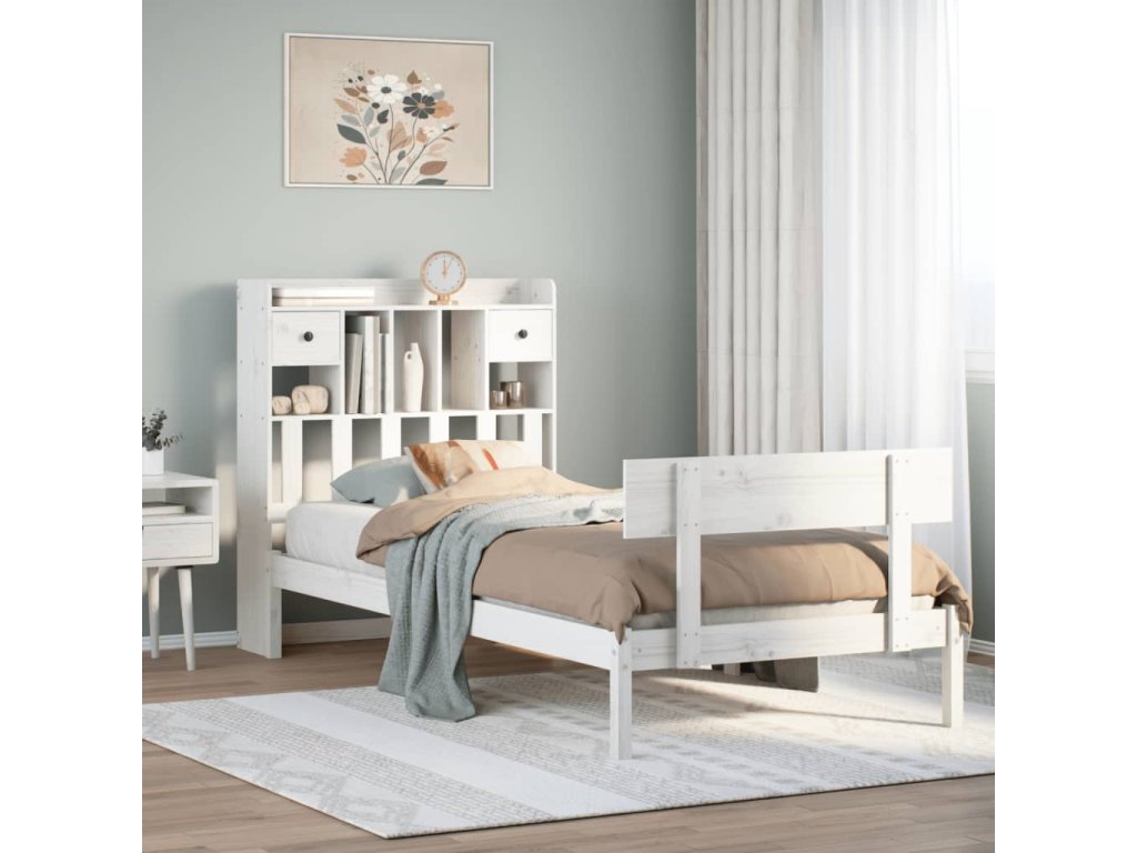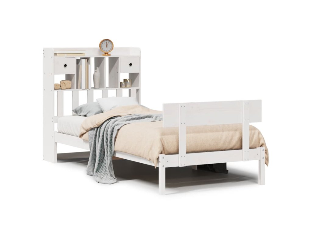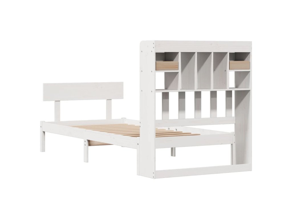 Postel s knihovnou bez matrace bílá 90x190 cm masivní borovice 3321821