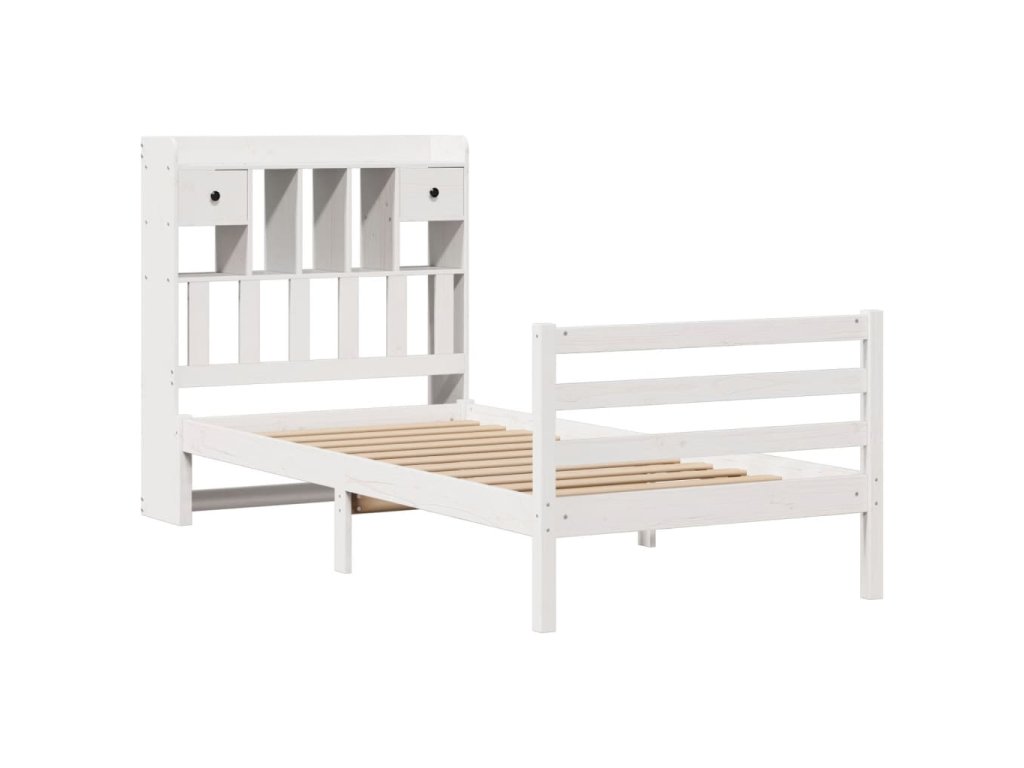 Postel s knihovnou bez matrace bílá 90x190 cm masivní borovice 3321925
