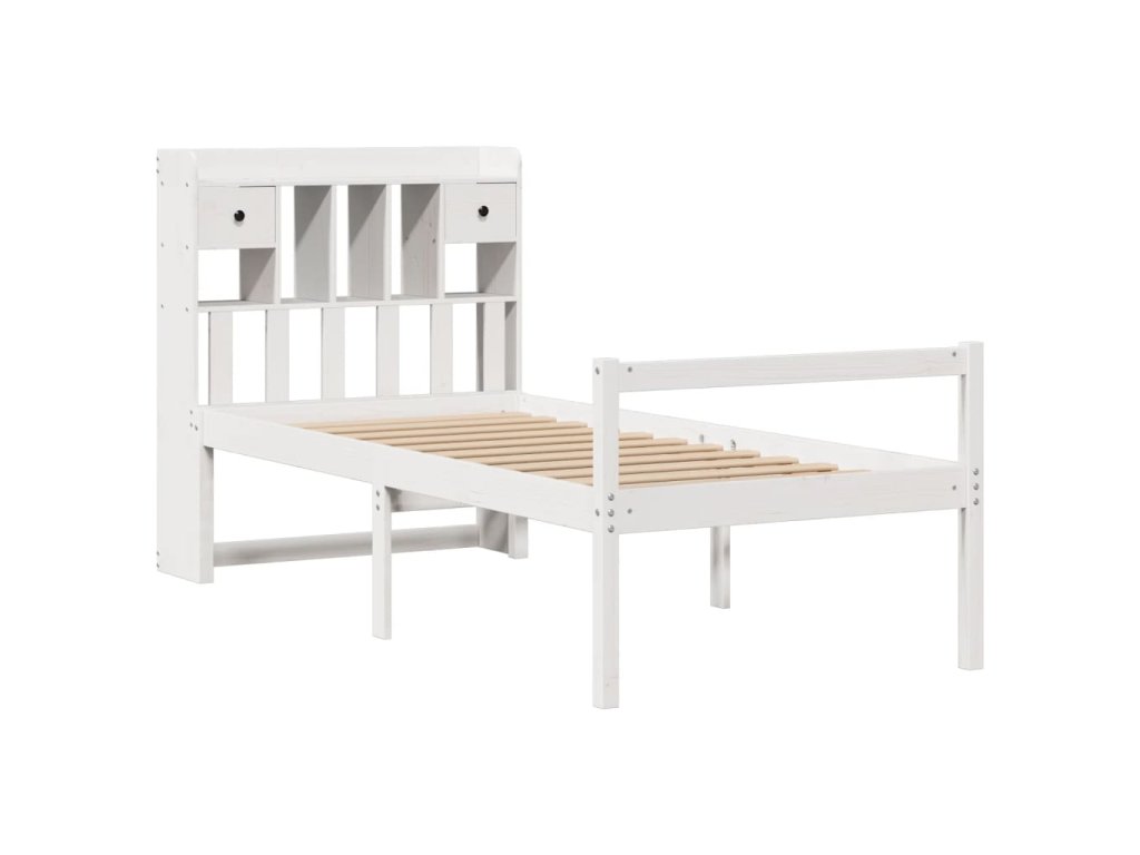 Postel s knihovnou bez matrace bílá 90x190 cm masivní borovice 3322042