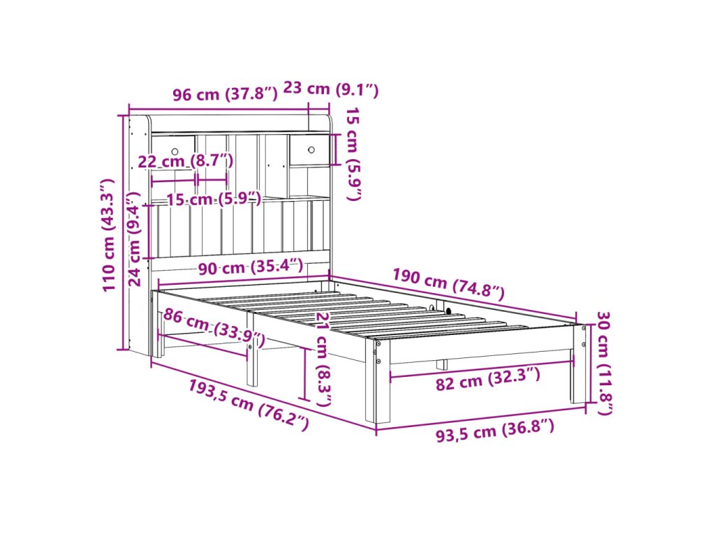 - Vhodné rozměry matrace: 90 x 190 cm (Š x D) (matrace není součástí balení)