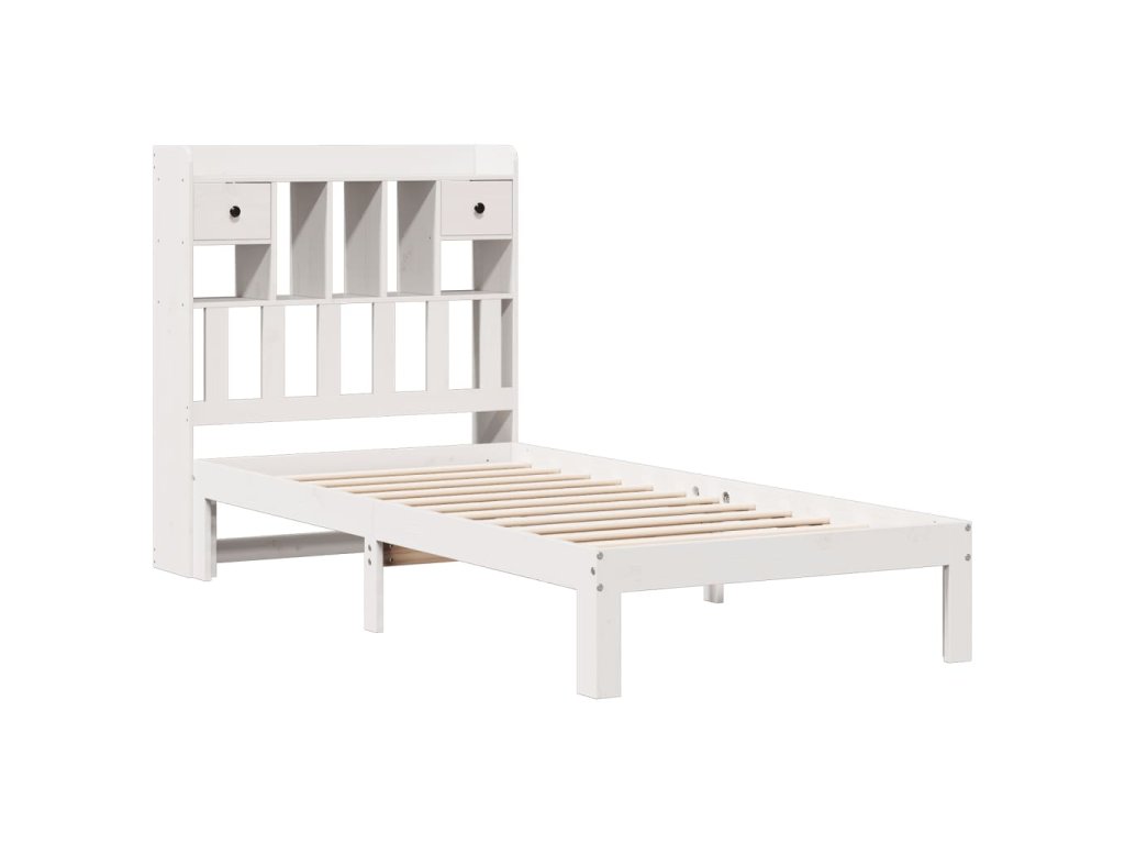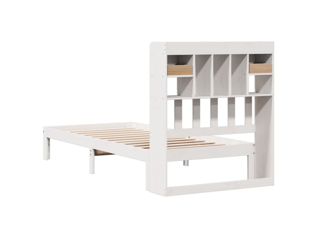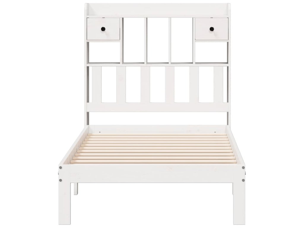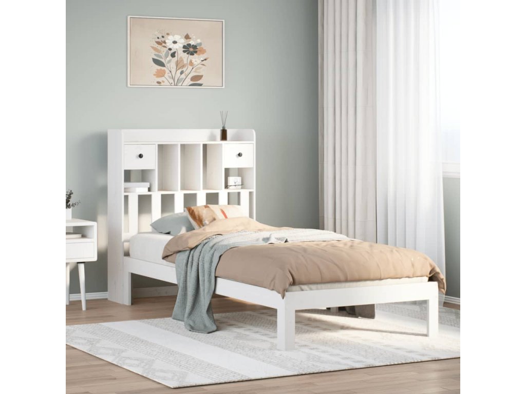 Postel s knihovnou bez matrace bílá 90x190 cm masivní borovice 3322588