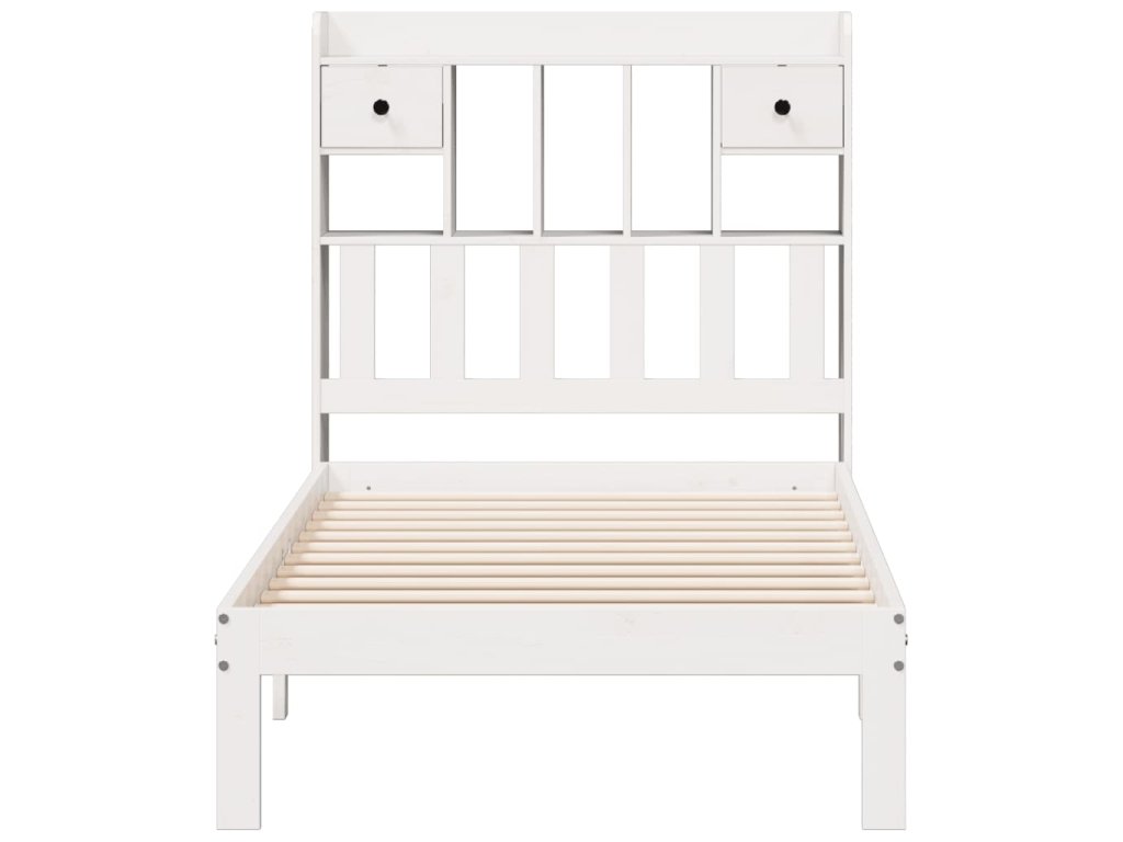 Postel s knihovnou bez matrace bílá 90x200 cm masivní borovice 3322596