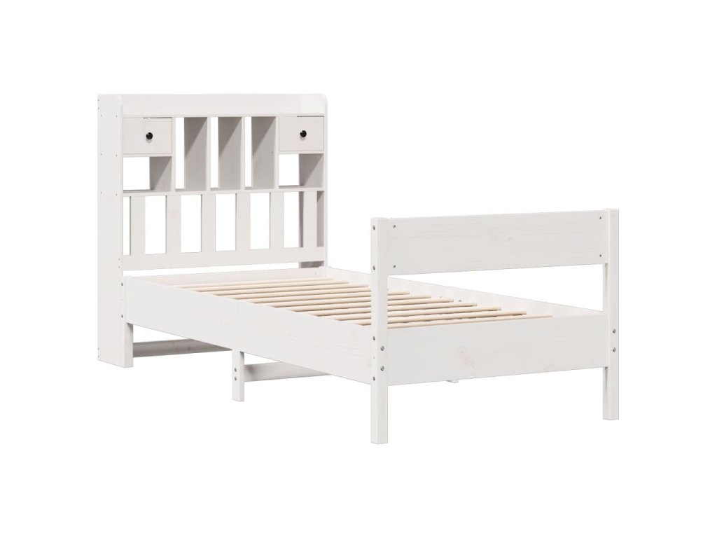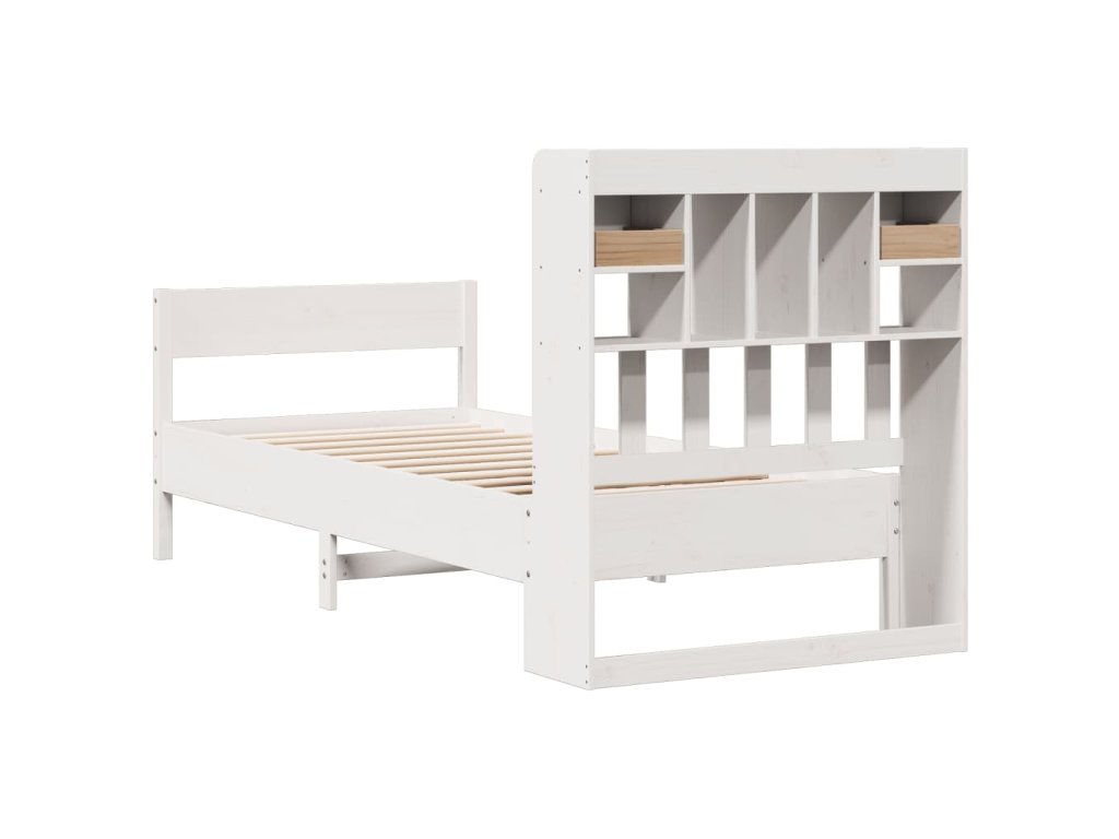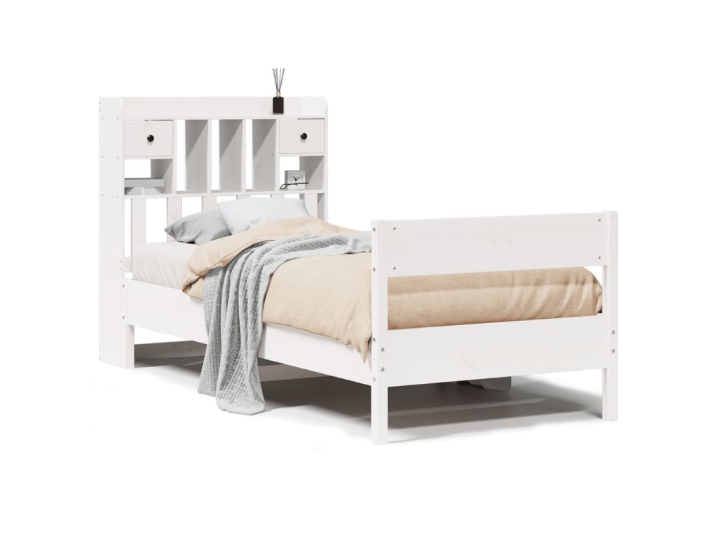 Postel s knihovnou bez matrace bílá 90x200 cm masivní borovice 3323036