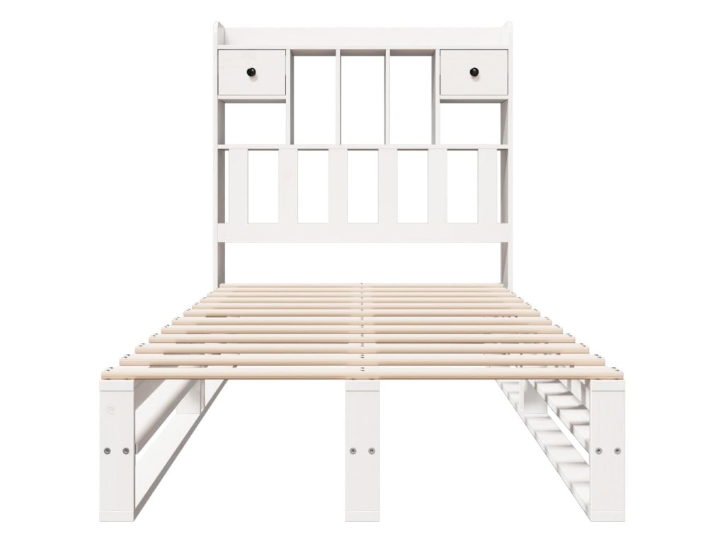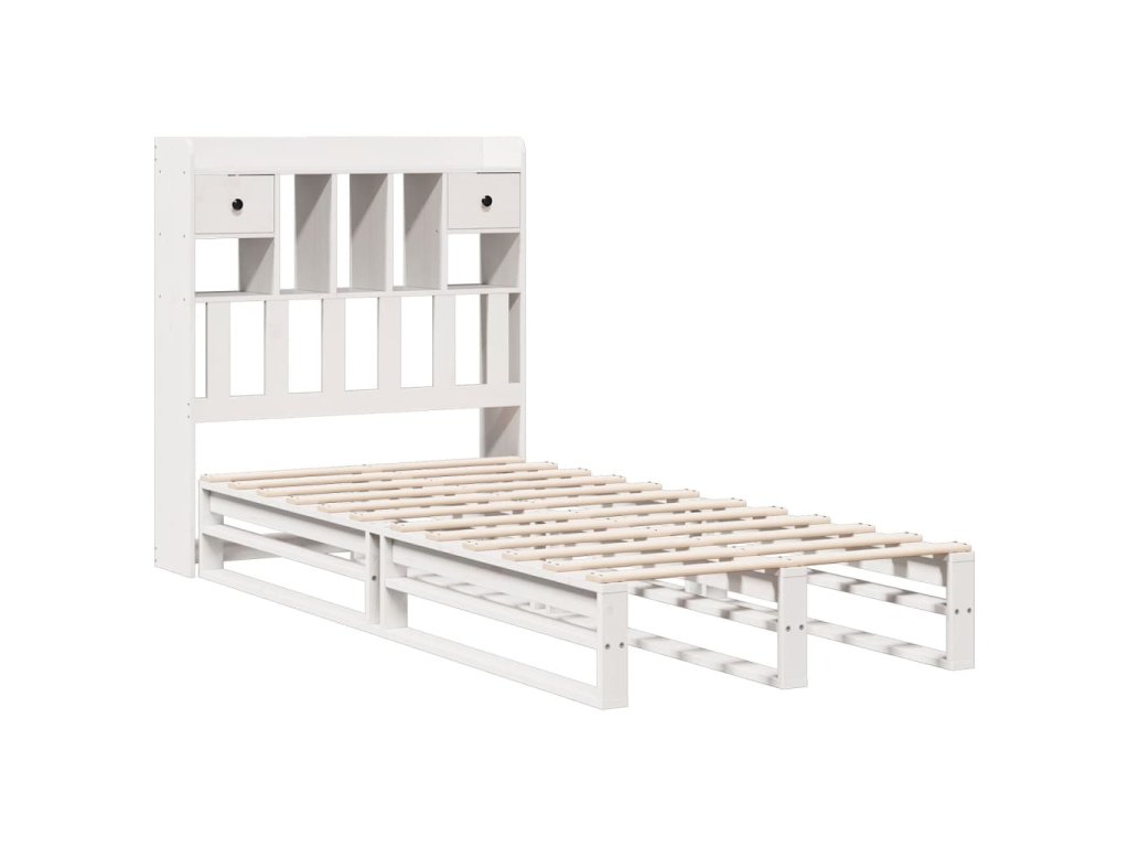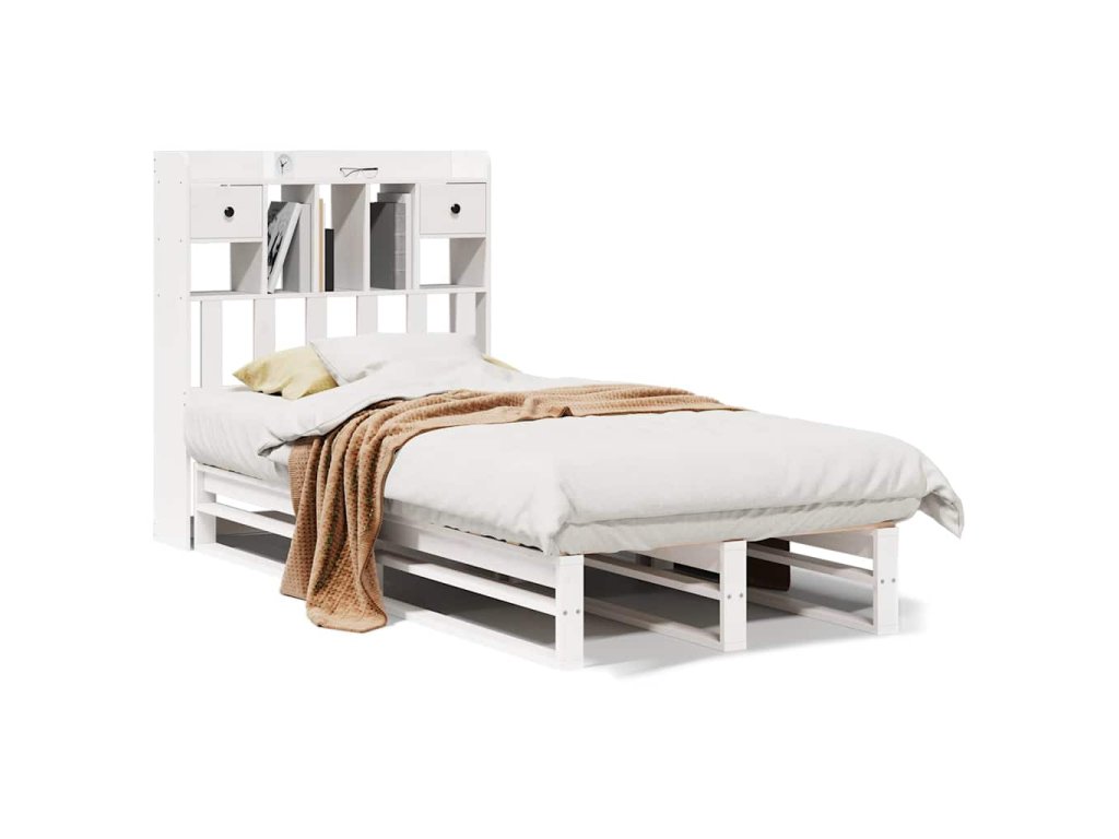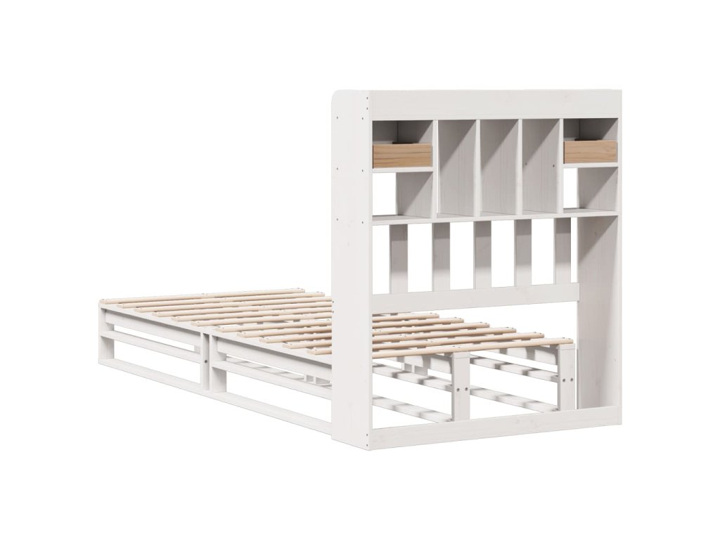 Postel s knihovnou bez matrace bílá 90x200 cm masivní borovice 3323951