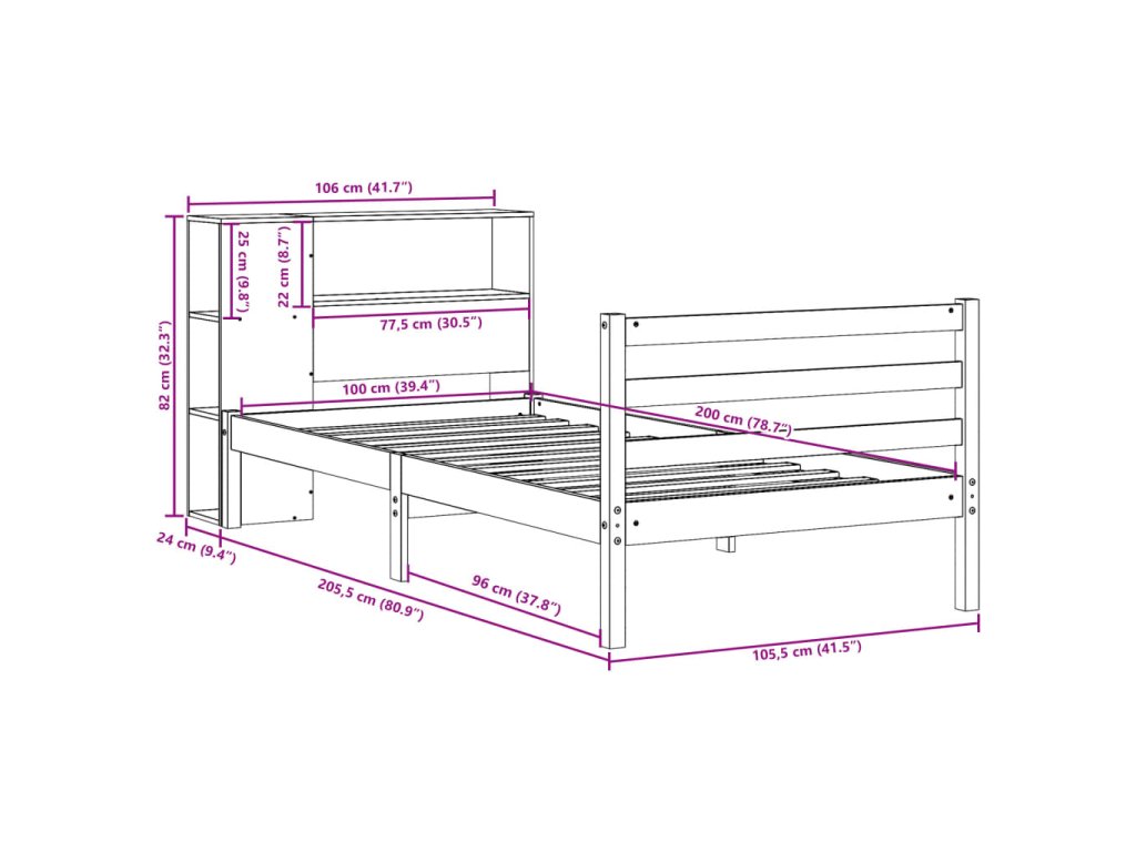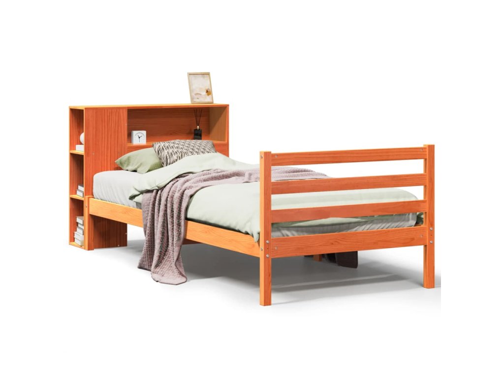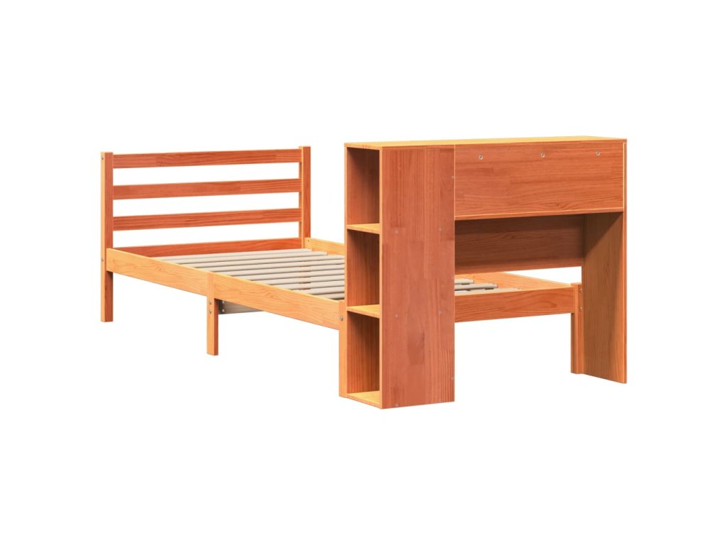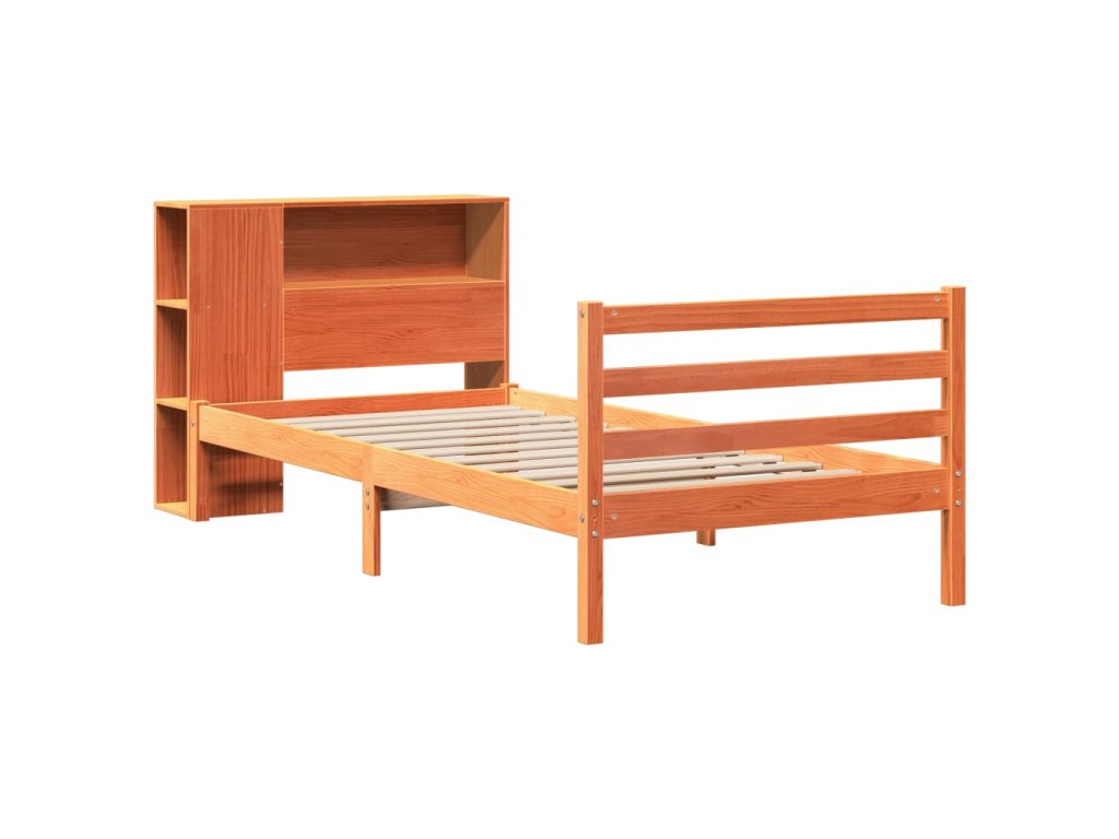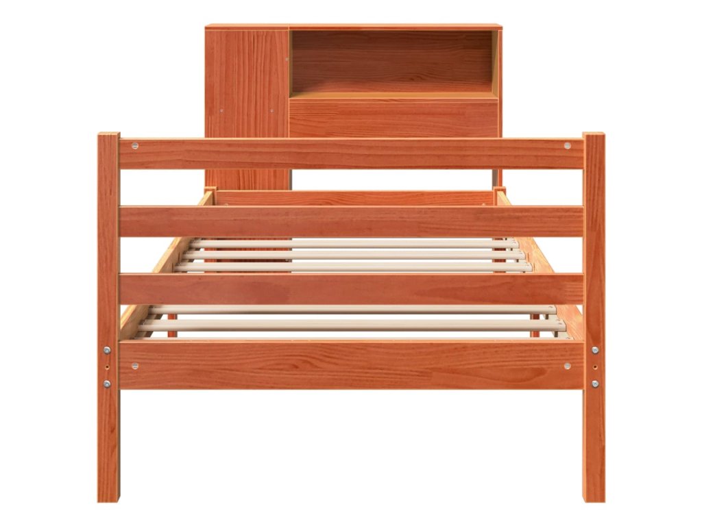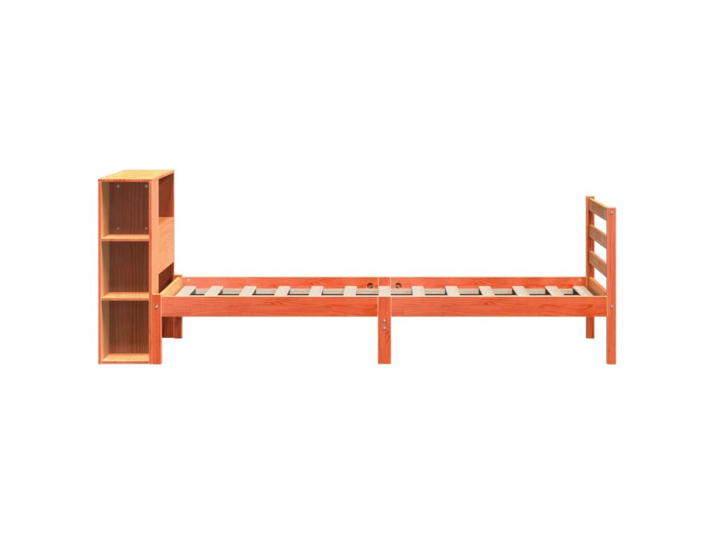Postel s knihovnou bez matrace hnědá 100 x 200 cm masivní dřevo 3321882