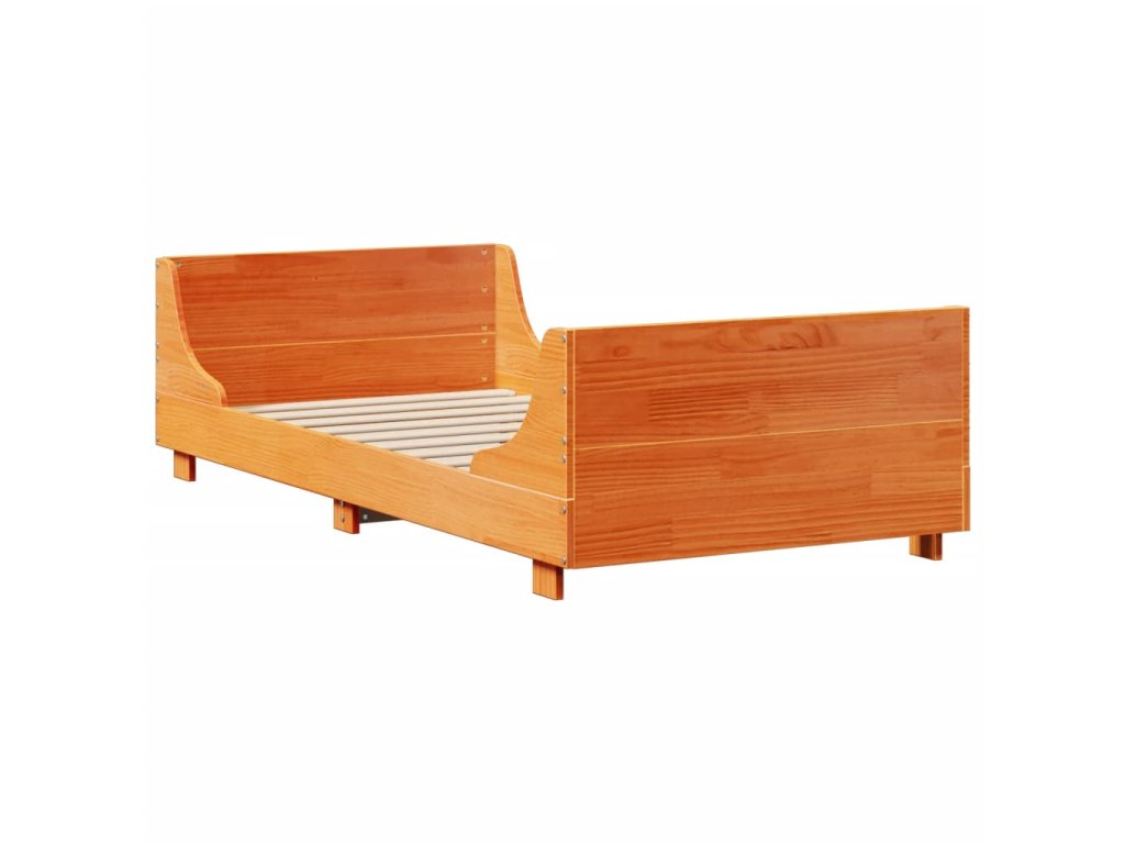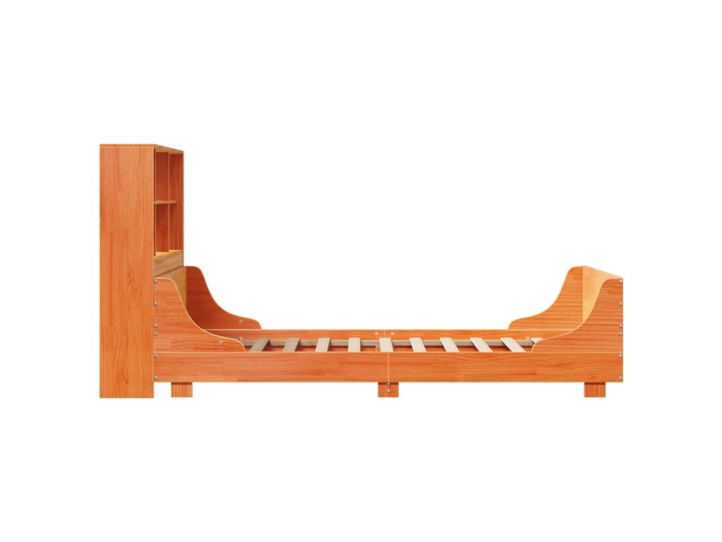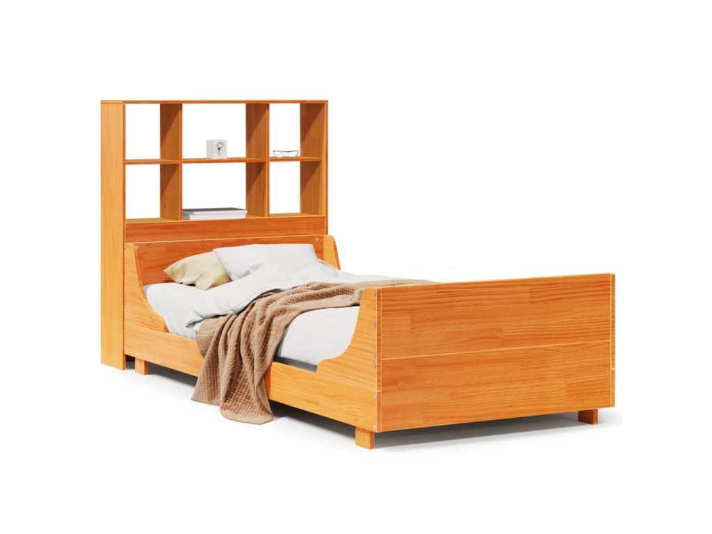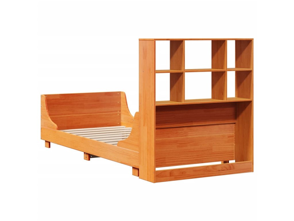 Postel s knihovnou bez matrace hnědá 100 x 200 cm masivní dřevo 3323814