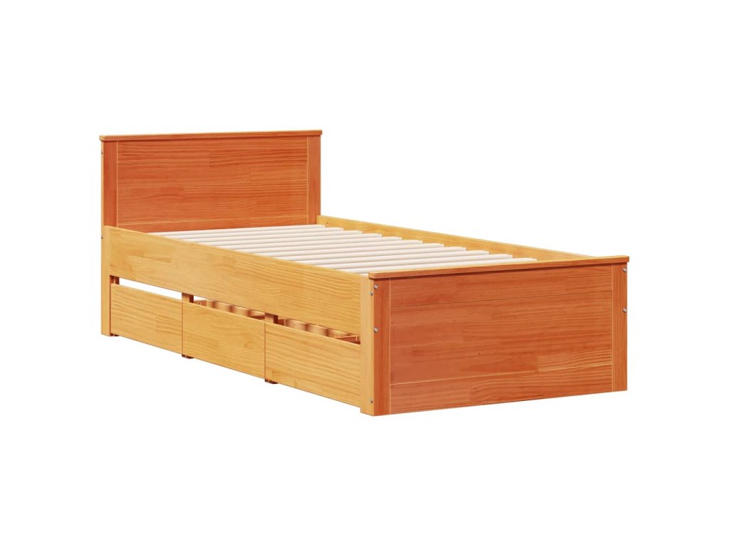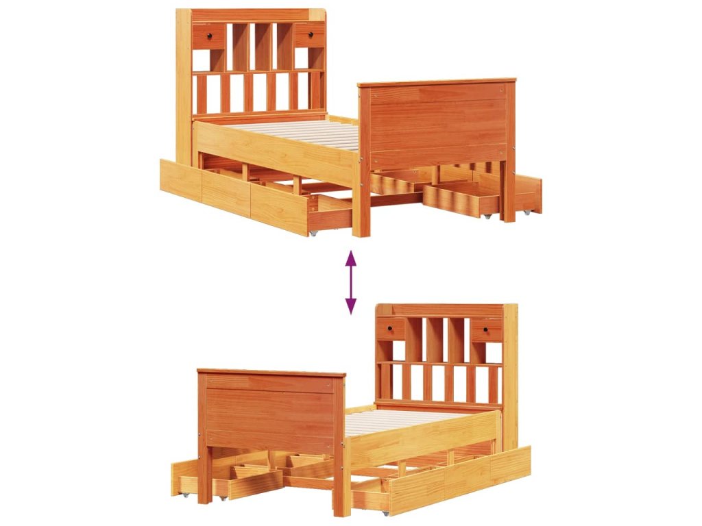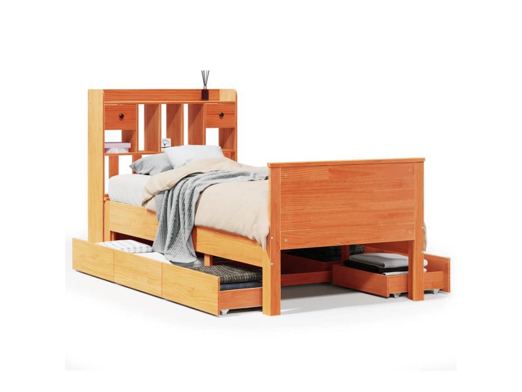 Postel s knihovnou bez matrace hnědá 100x200 cm masiv borovice 3308929