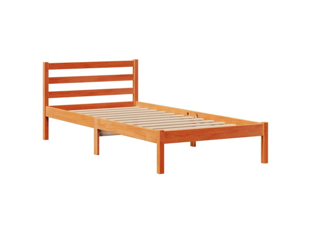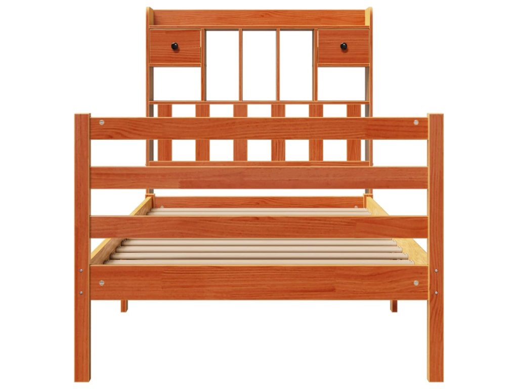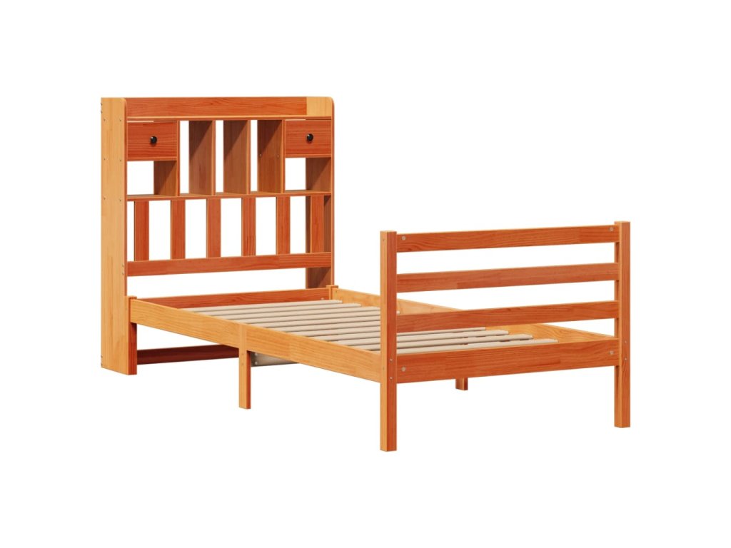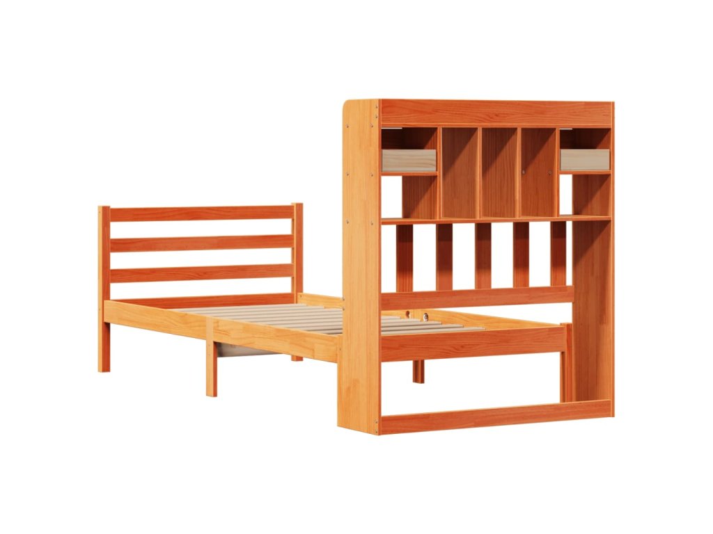 Postel s knihovnou bez matrace hnědá 100x200 cm masiv borovice 3321954