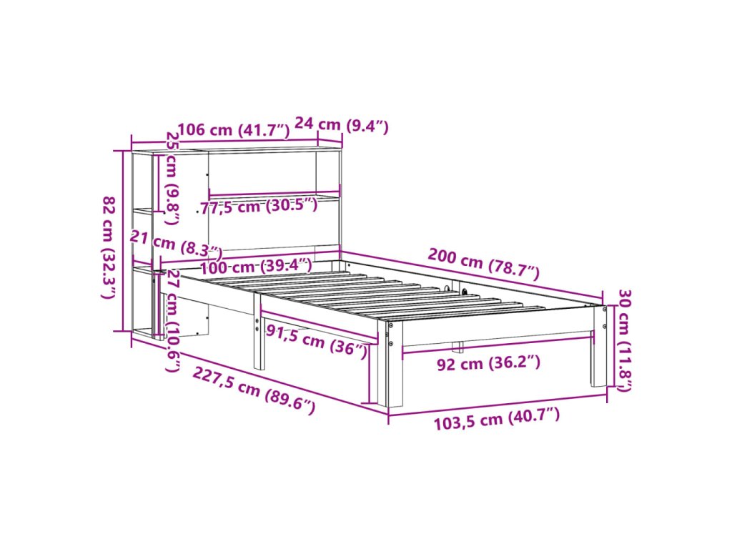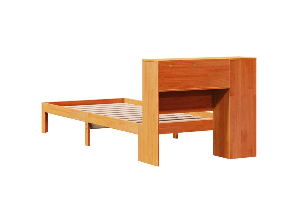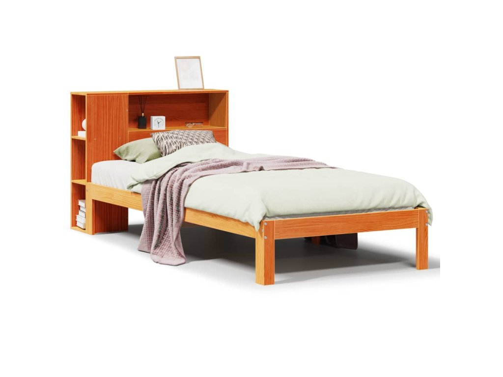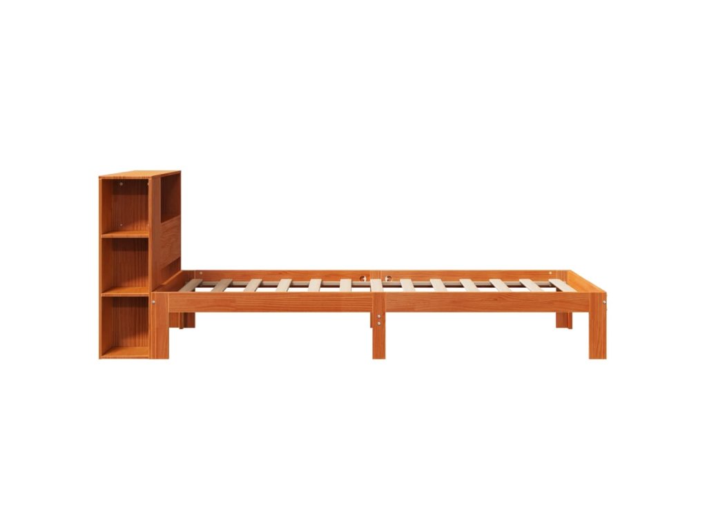Postel s knihovnou bez matrace hnědá 100x200 cm masiv borovice 3322545