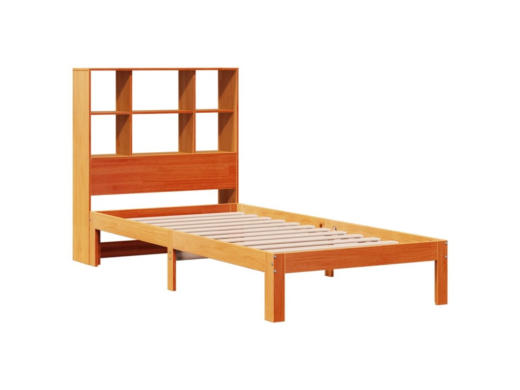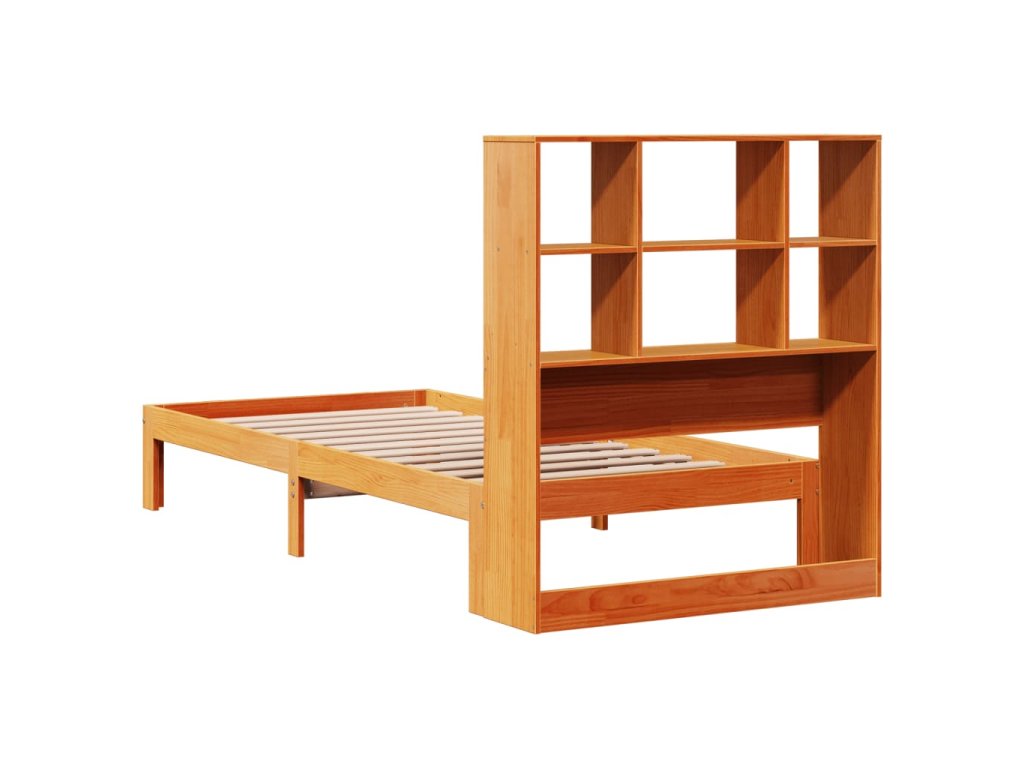 Postel s knihovnou bez matrace hnědá 100x200 cm masiv borovice 3322578