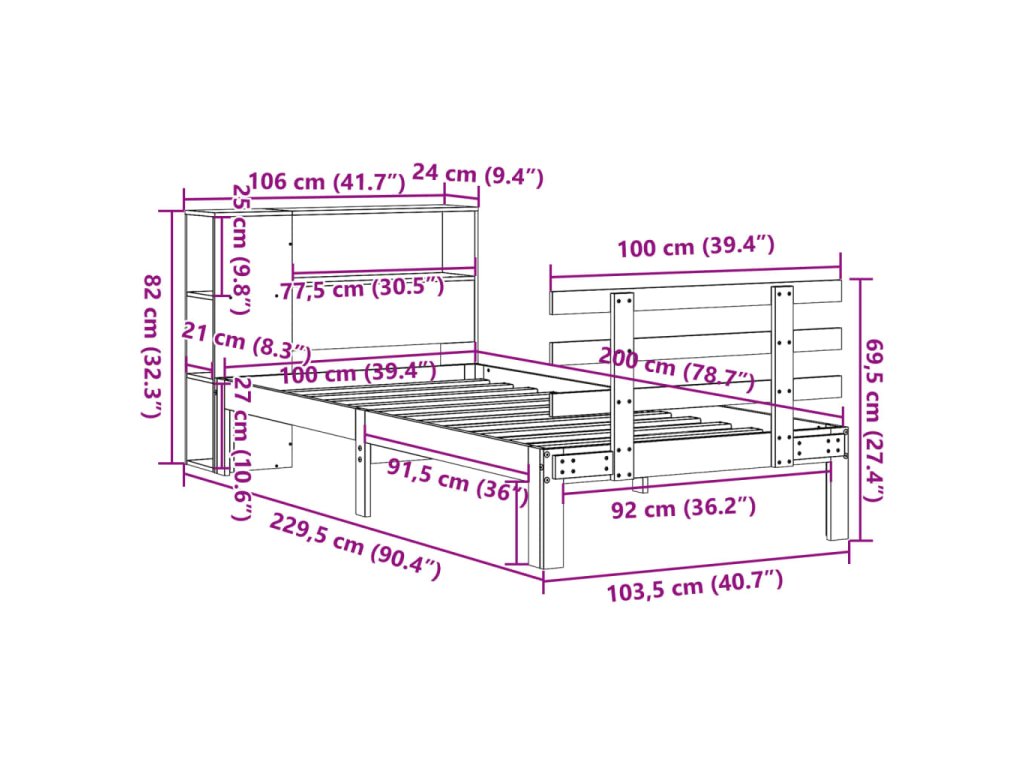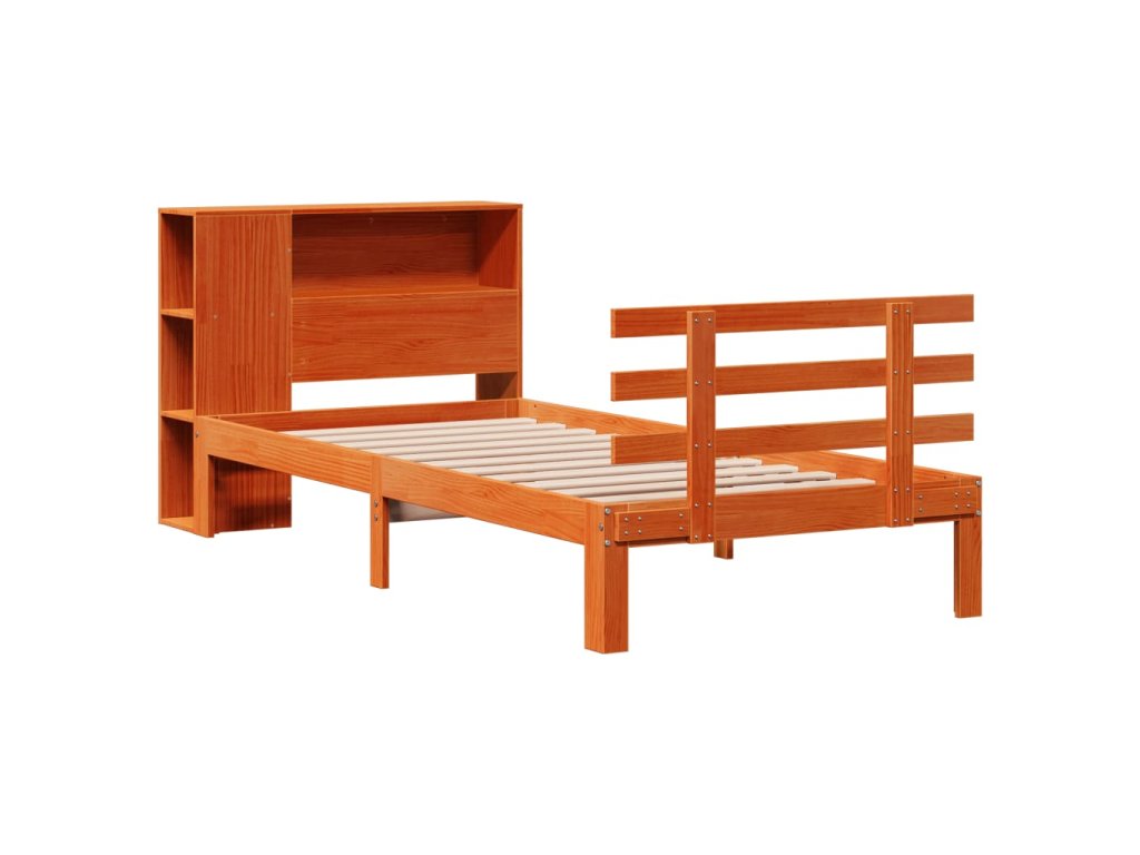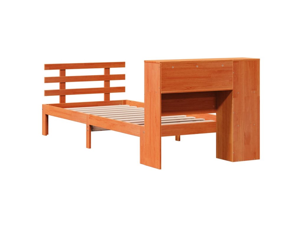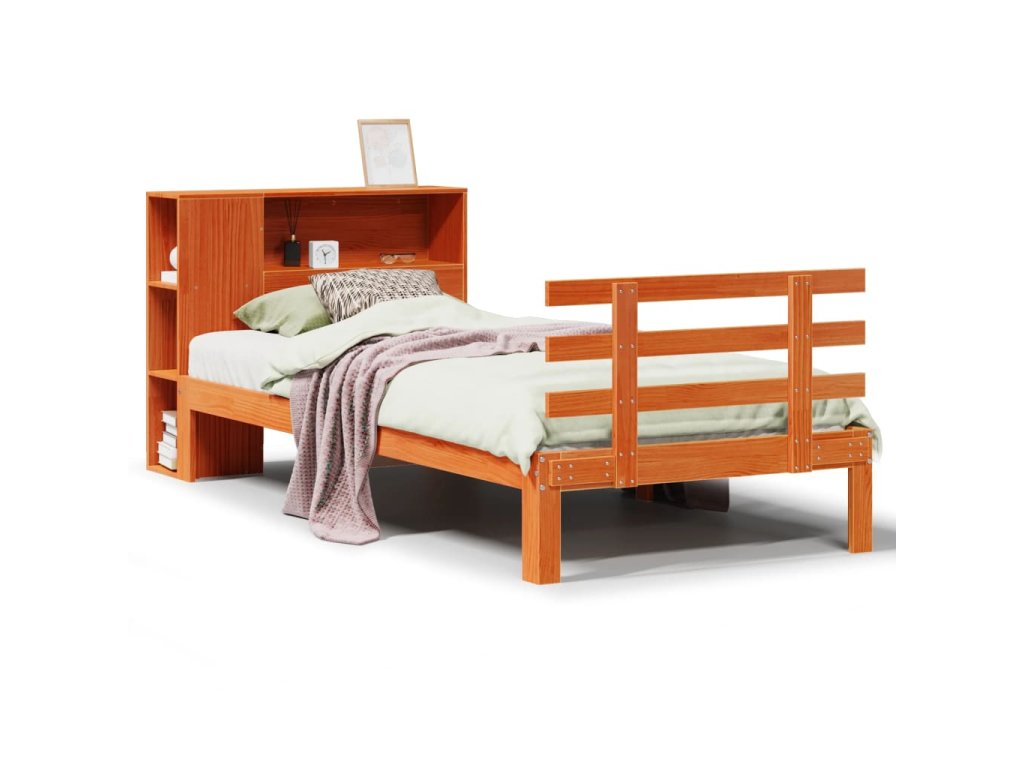 Postel s knihovnou bez matrace hnědá 100x200 cm masiv borovice 3322740