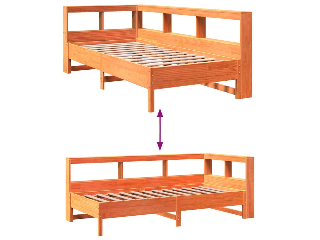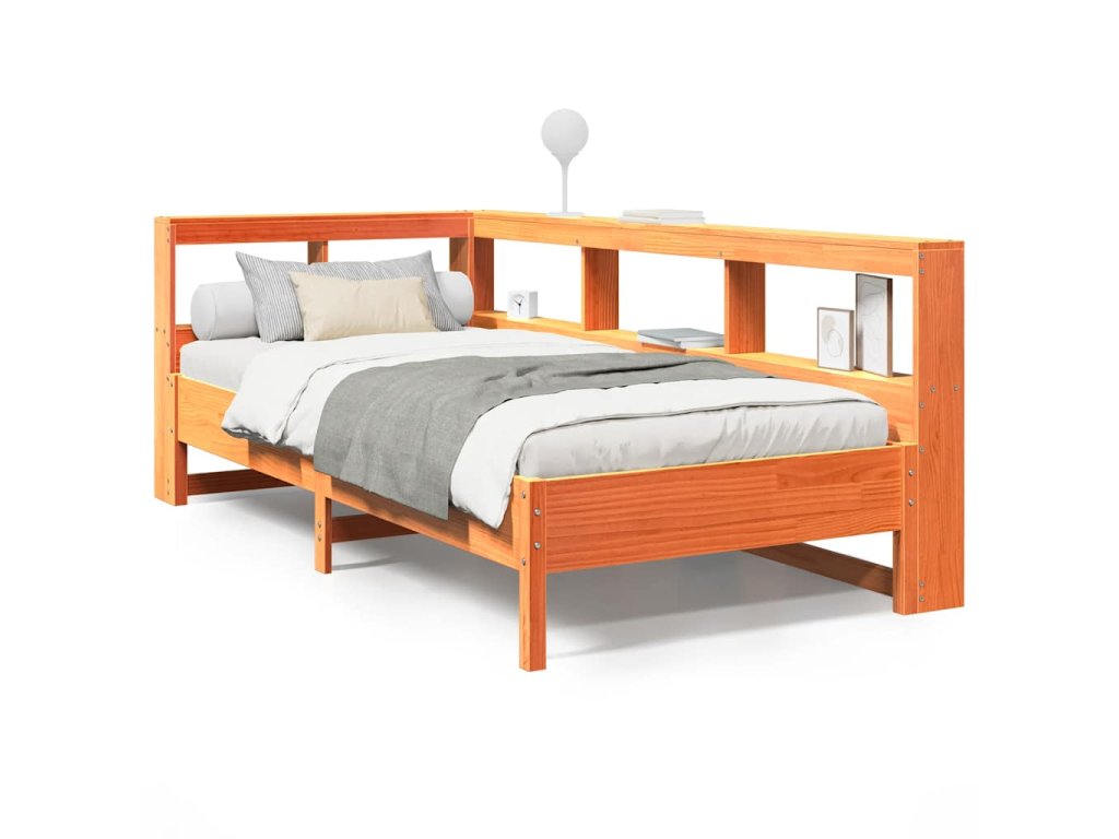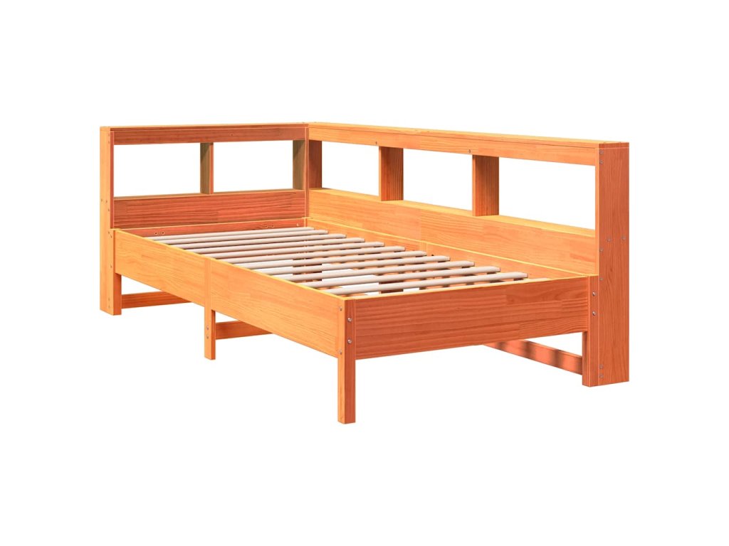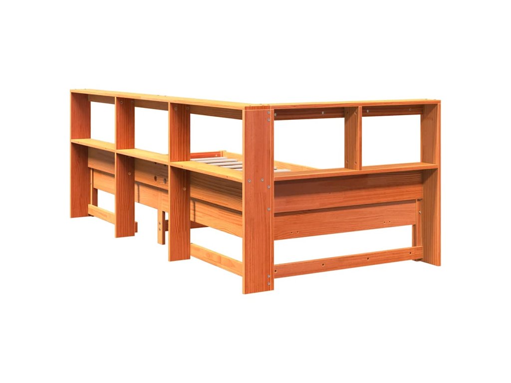 Postel s knihovnou bez matrace hnědá 100x200 cm masiv borovice 3324429