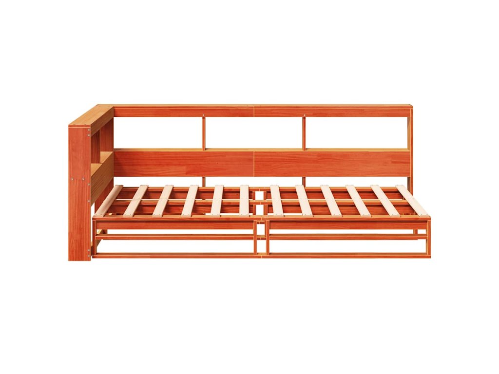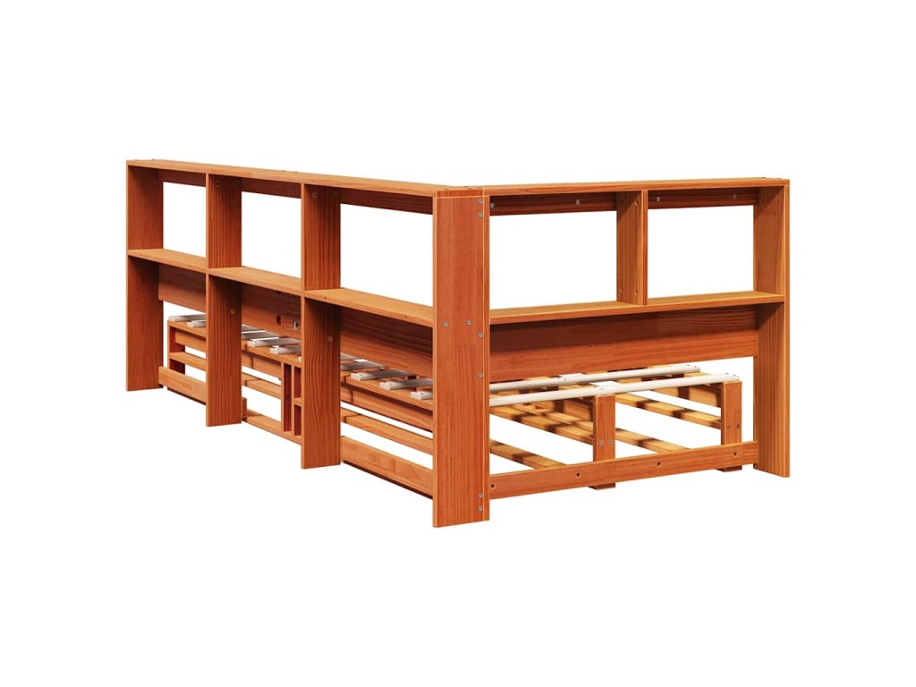 Postel s knihovnou bez matrace hnědá 100x200 cm masiv borovice 3324507