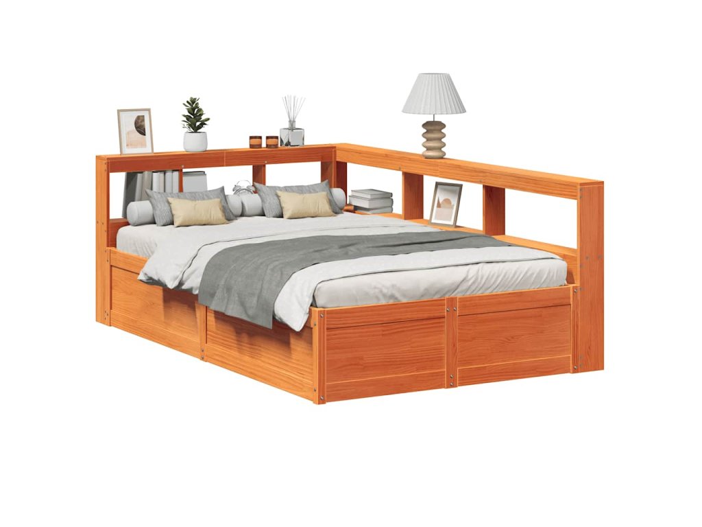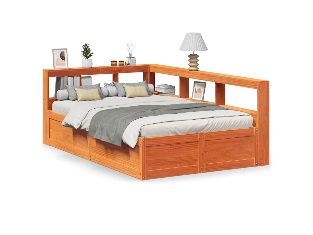 Postel s knihovnou bez matrace hnědá 120x190 cm masiv borovice 3324480