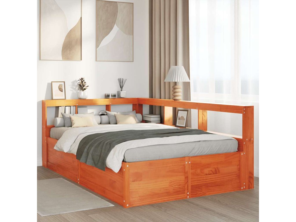 Postel s knihovnou bez matrace hnědá 120x200 cm masiv borovice 3324465